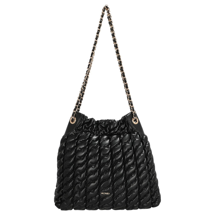 Die Picard Finesse Beuteltasche in elegantem Schwarz besticht durch ihre markante gesteppte Optik und verleiht jedem Outfit eine stilvolle Note. Mit ihrer feinen Tragekette ist sie vielseitig tragbar – ob lässig über der Schulter oder elegant in der Hand.