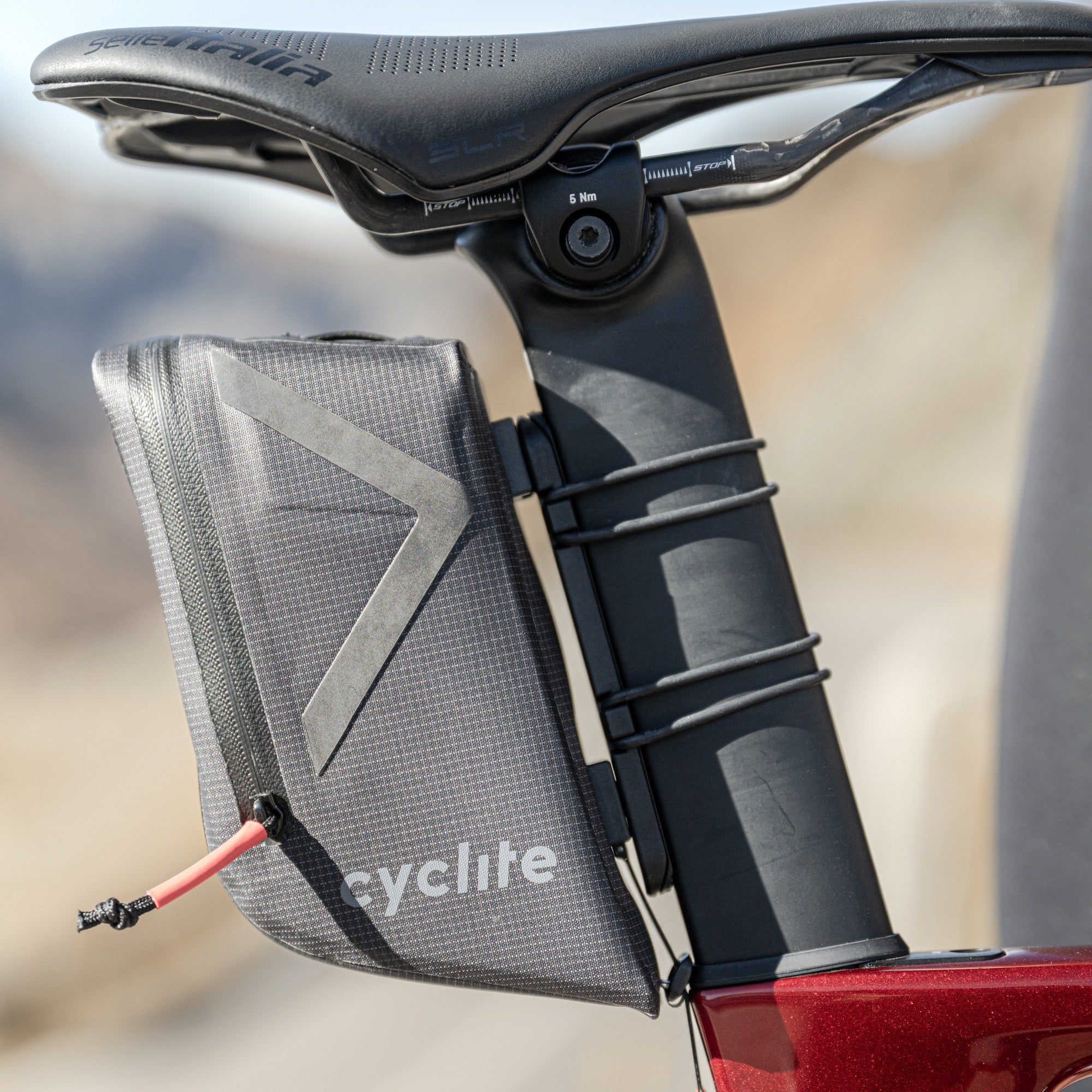 A compact and aerodynamically shaped bike bag, ideally suited for gravel bikes and road bikes, featuring a discreet design.