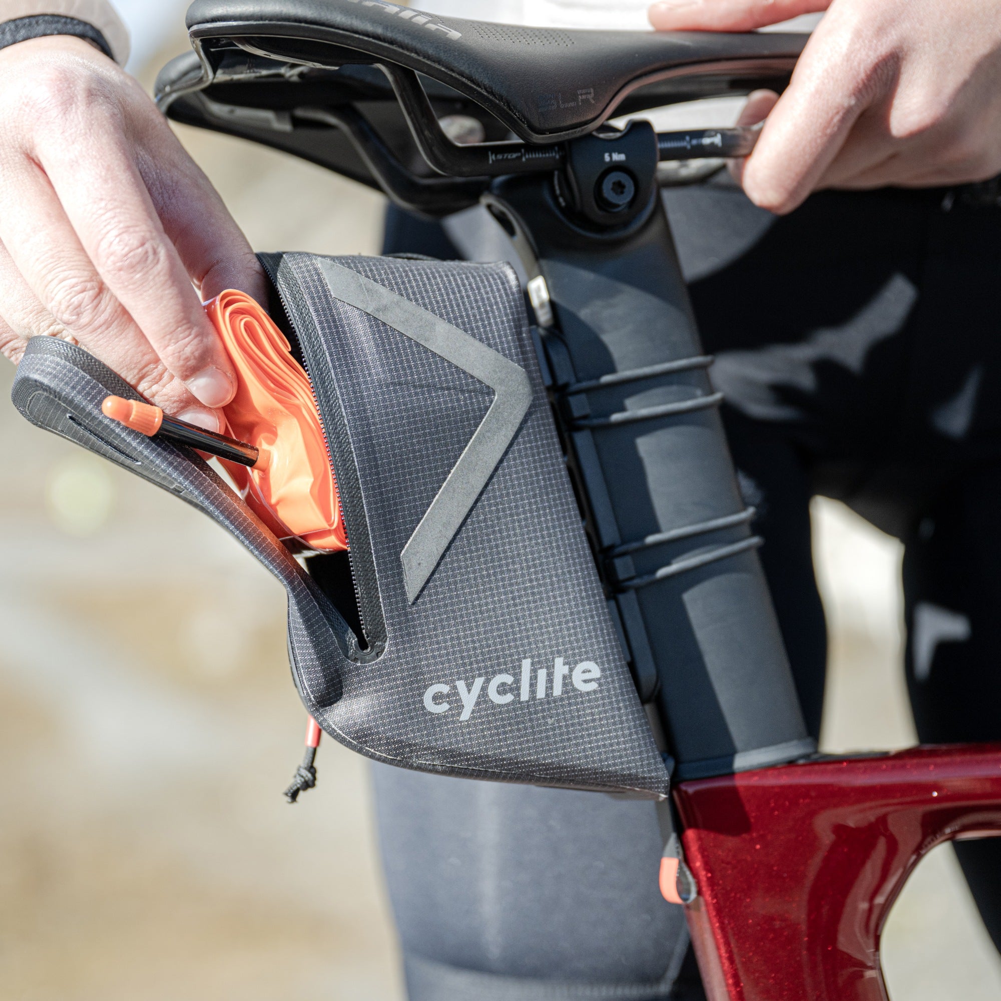 The black CYCLITE saddle bag combines functionality and a subtle design, ideal for demanding cyclists during training rides and competitions.