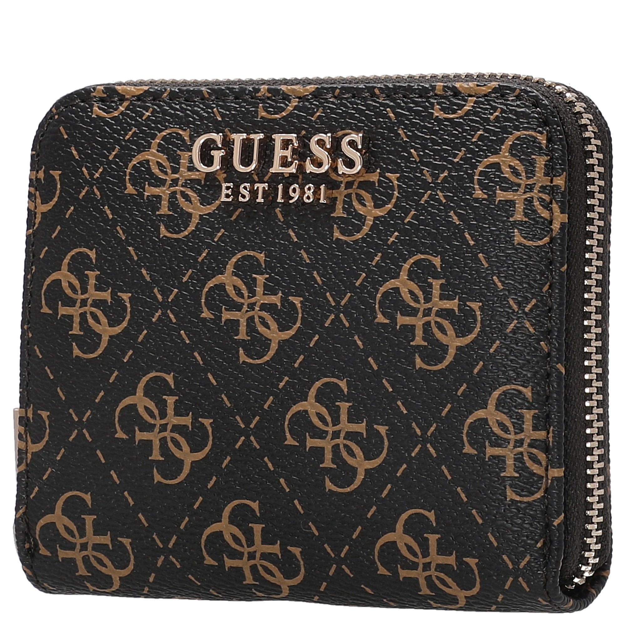 The Guess Laurel II SLG Small Zip wallet in brown logo is a stylish companion for everyday use and complements any handbag with a touch of luxury.