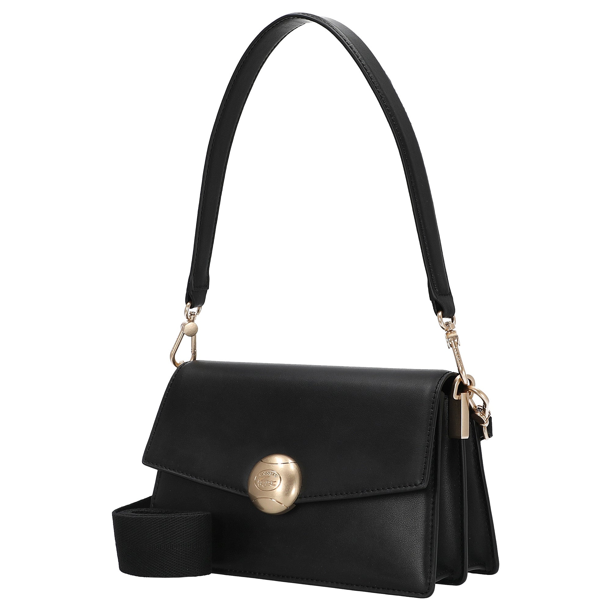 The Lacoste Tennis Bliss shoulder bag in elegant black combines feminine design with practical functionality. Inspired by the iconic tennis ball motif, it stands out with high-quality details and a compact, stylish shape.