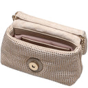 The Liu Jo Lapuffy XS Crossbody Bag adds a touch of glamour to any outfit. In a subtle neutro tone adorned with shimmering rhinestones, it draws admiring glances and is the perfect companion for special occasions.
