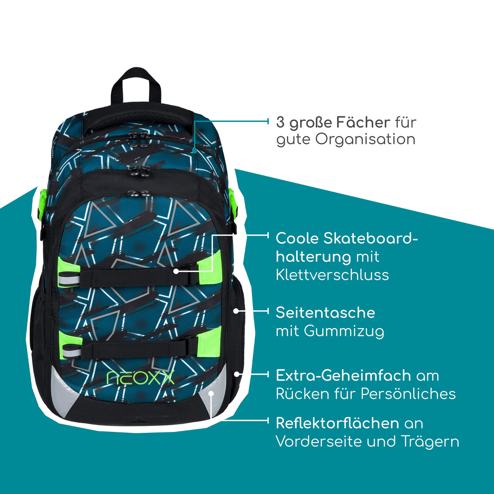 Discover the Neoxx ACTIVE PRO School Backpack in the trendy color Flash yourself – the perfect combination of style and functionality for students from 5th grade onward. This backpack impresses not only with its modern design but also with its thoughtful features that make school life easier.