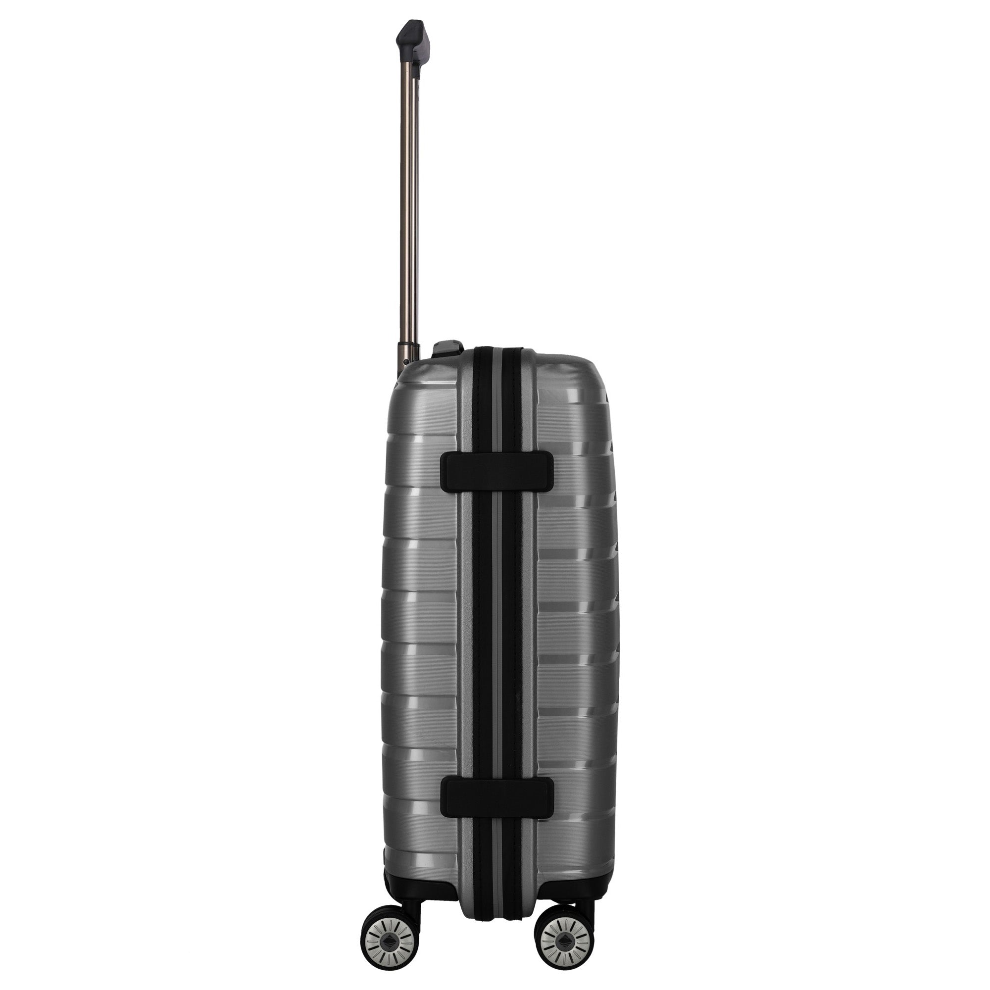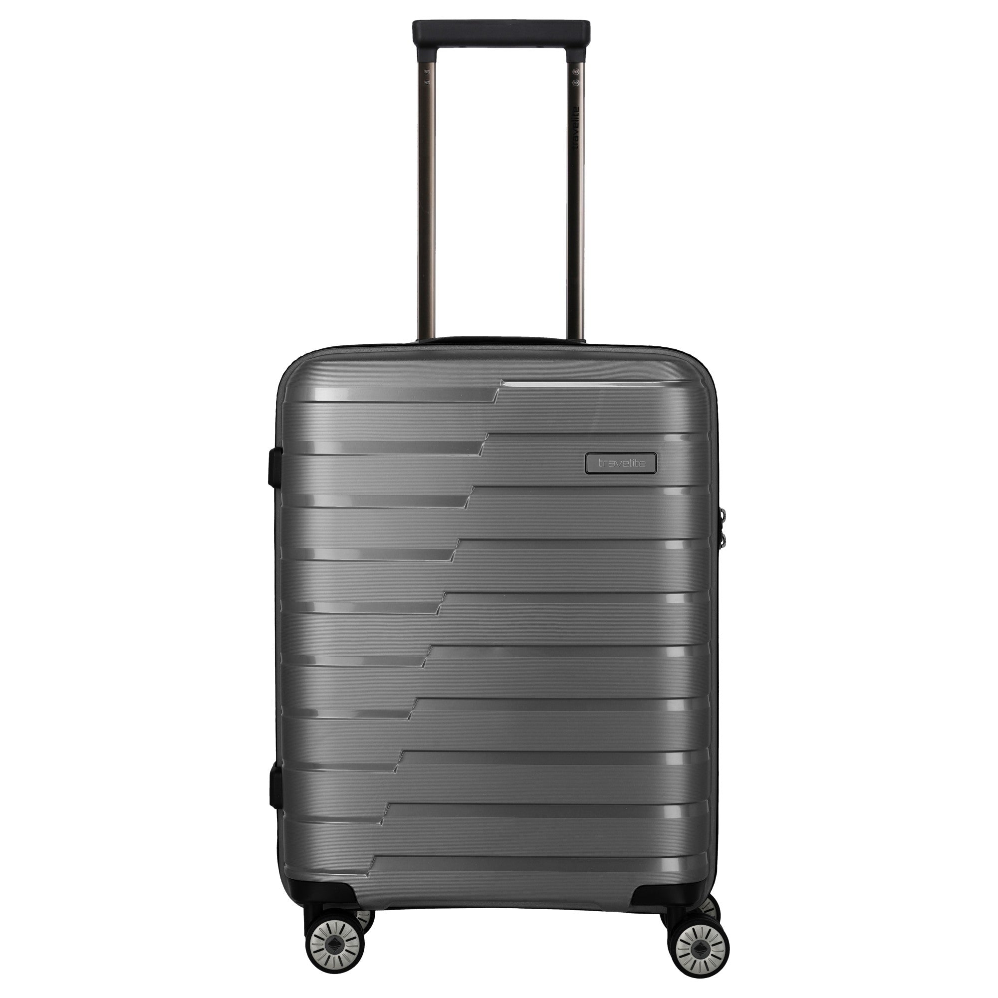 Discover the Travelite Air Base - 4-Wheel Cabin Trolley S 55 cm in the elegant color anthracite. This trolley is not only a practical companion for your travels but also a stylish accessory that impresses with its modern design. Made from particularly durable polypropylene, this hard-shell trolley is virtually indestructible and thus ideal for frequent flyers.