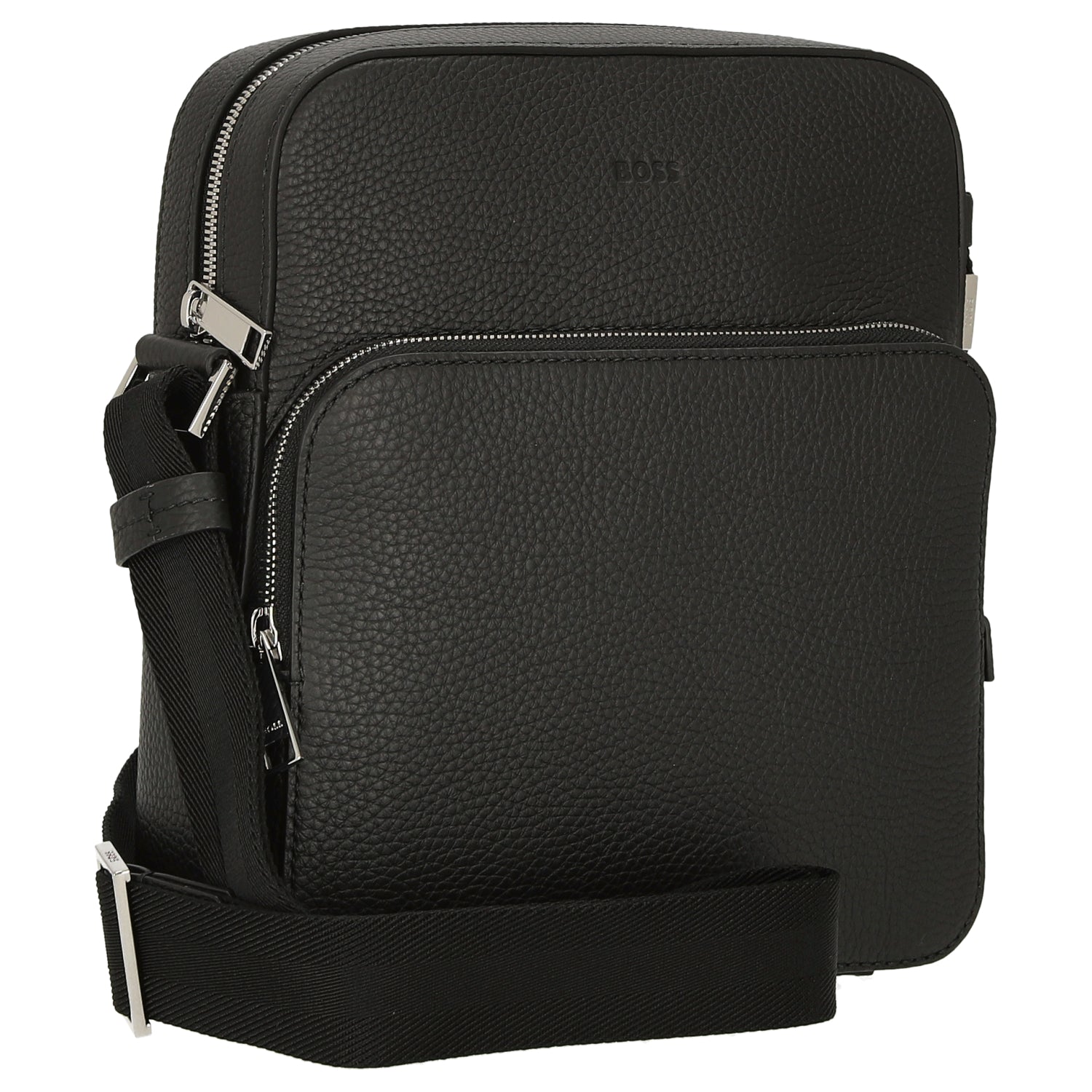 Discover the BOSS Crosstown Messenger Bag in elegant black. This stylish reporter bag made from high-quality, soft Italian leather combines functionality with fashionable chic. With its natural grain, it is not only a practical companion but also an expression of your personal style.