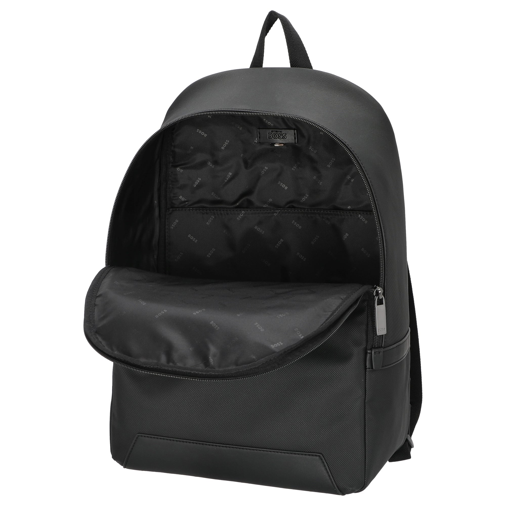An elegant backpack from BOSS, characterized by clean lines and high-quality details. The black Cullen Backpack combines stylish design with practical functionality for everyday use and travel.