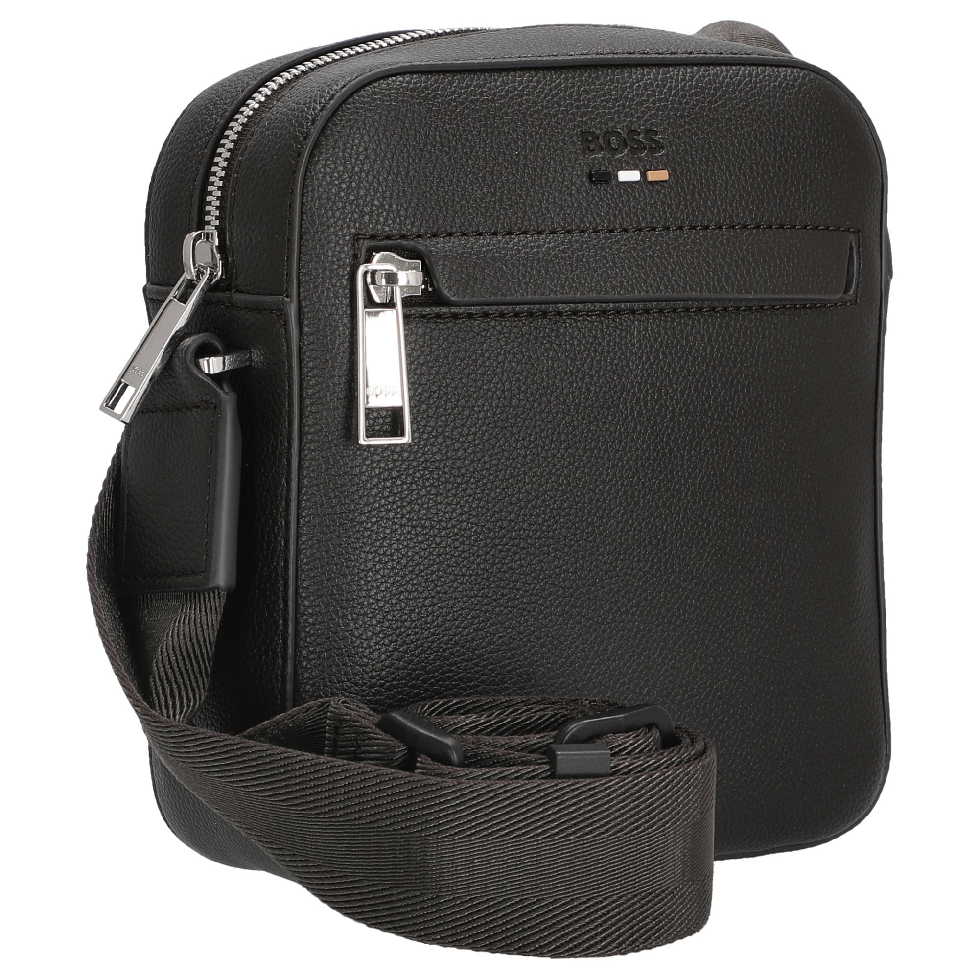 The BOSS Men Ray shoulder bag in dark brown stands out with its timeless elegant design and high-quality craftsmanship. This compact shoulder bag is a stylish companion for fashion-conscious men who value functionality and refined details.