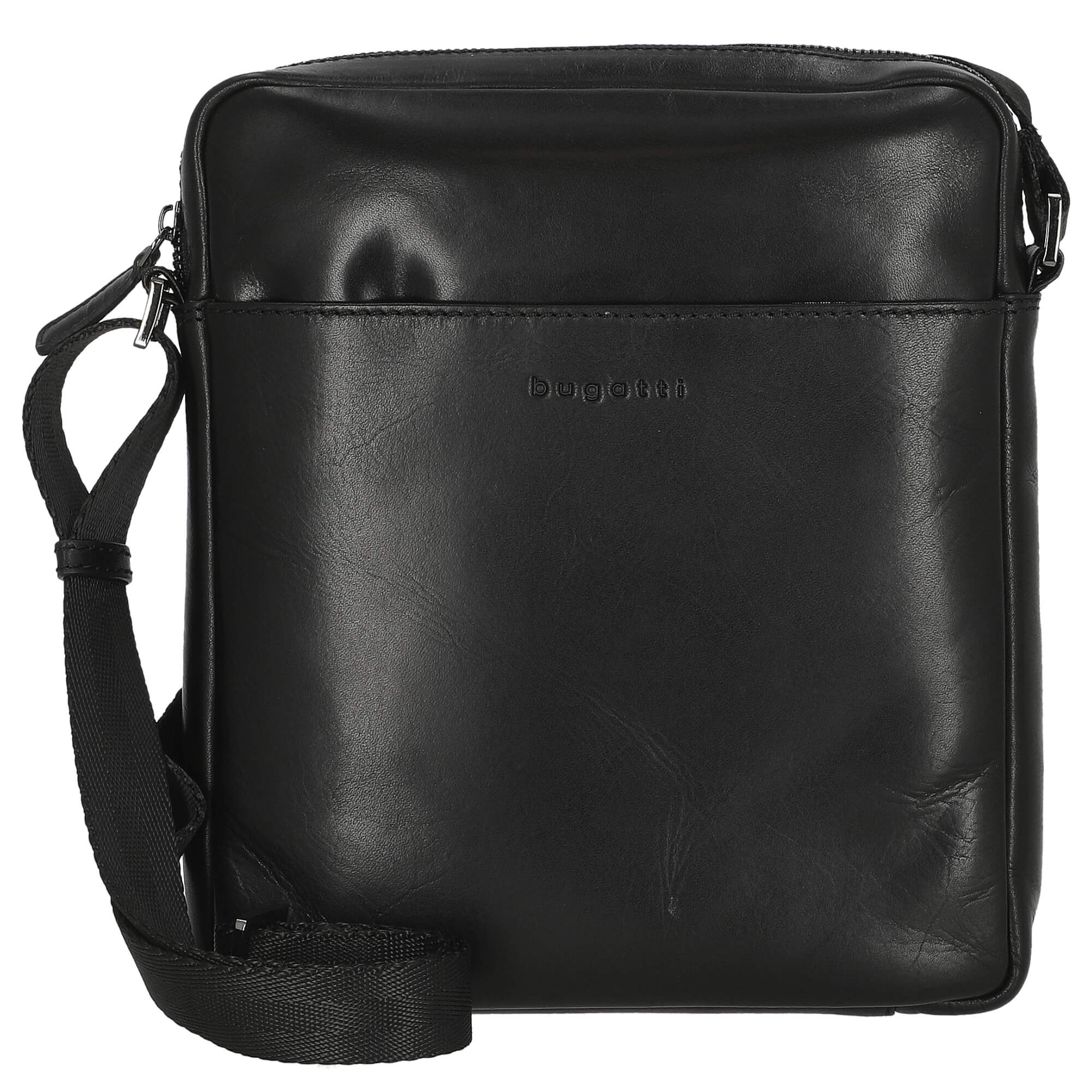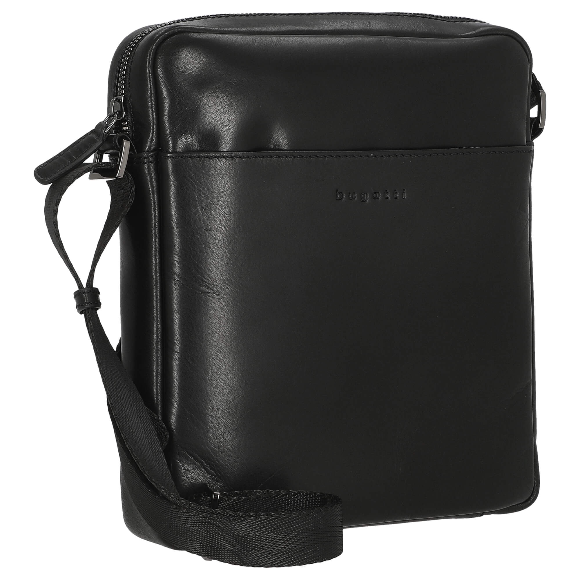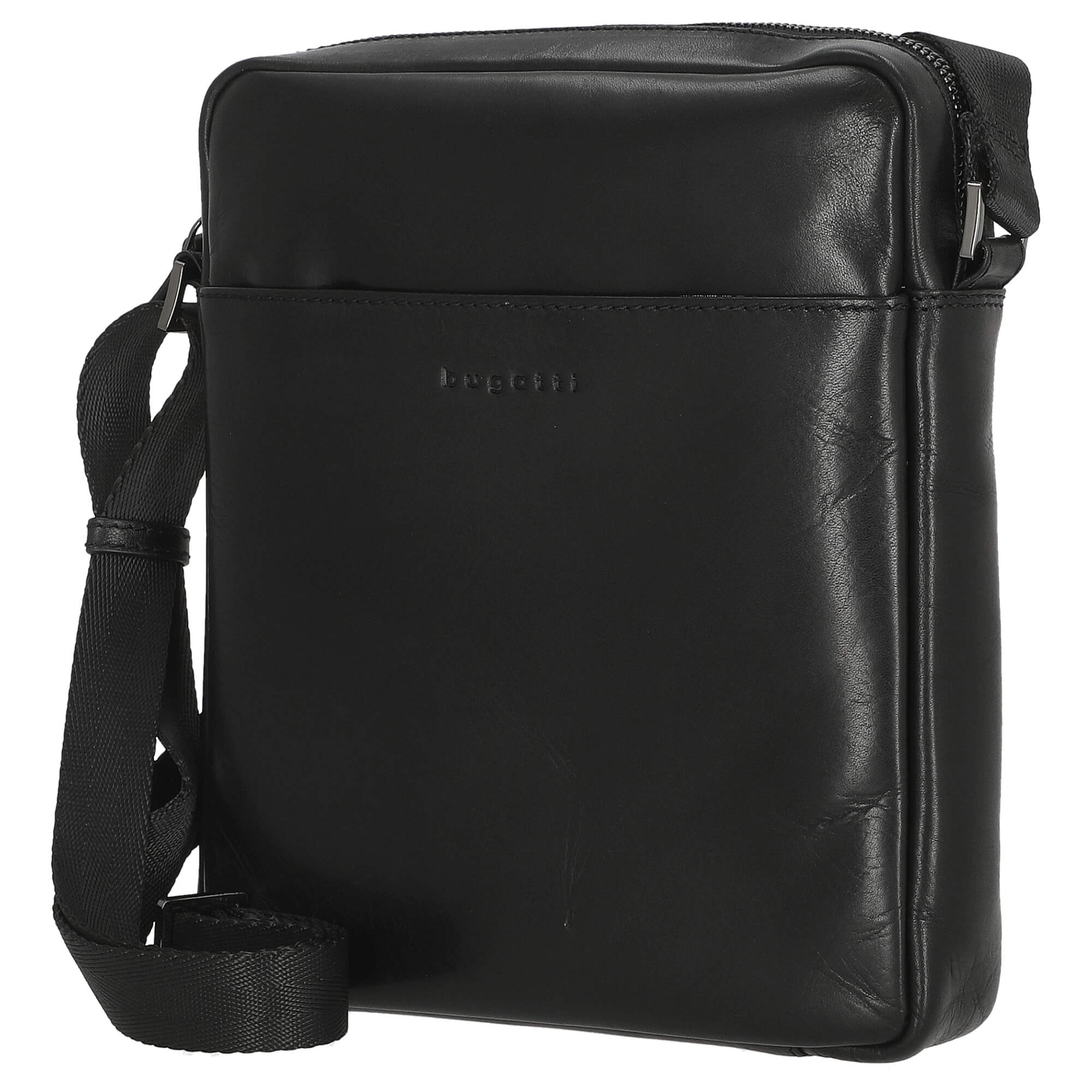 The exterior of the bag features the subtle bugatti logo on the front, highlighting the high-quality craftsmanship. The adjustable textile shoulder strap ensures personalized carrying comfort and allows you to customize the bag to your liking.