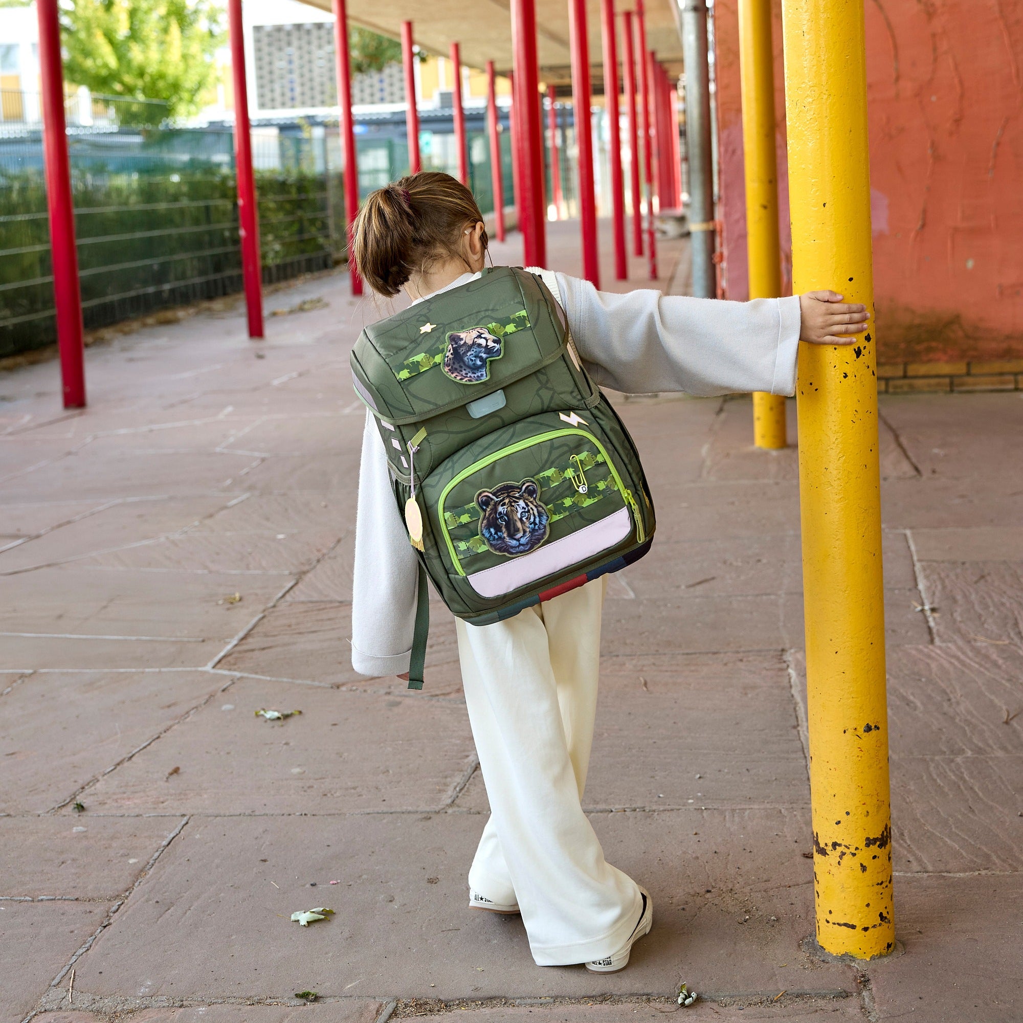 Made from durable, recycled polyester with a PFC-free impregnation, the set combines sustainability with functionality and is a reliable companion for everyday school use.