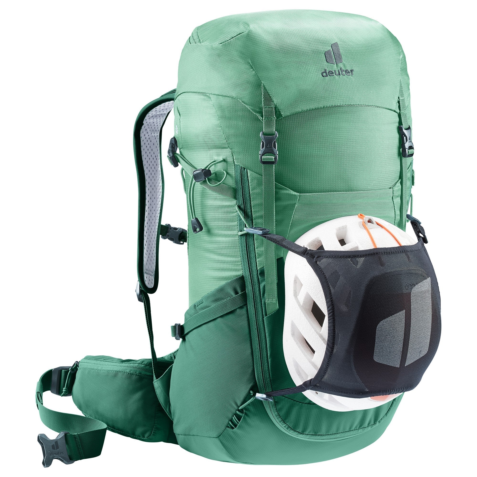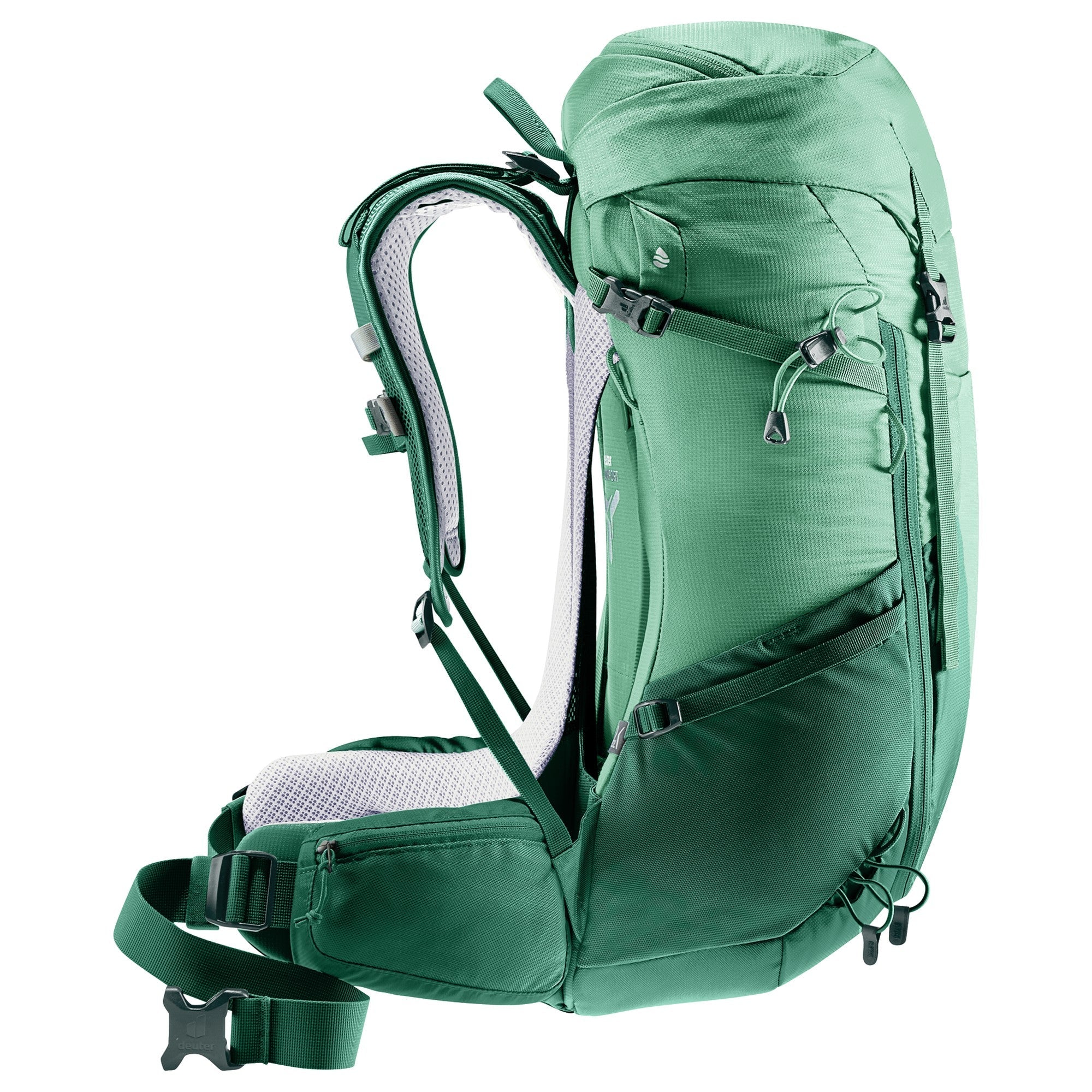 The Deuter Futura 24 SL hiking backpack in the elegant color spearmint-seagreen has been specifically designed for the needs of women. Weighing only 1.38 kilograms and featuring a thoughtful design, this backpack ensures maximum carrying comfort, especially on longer day hikes and multi-day treks.