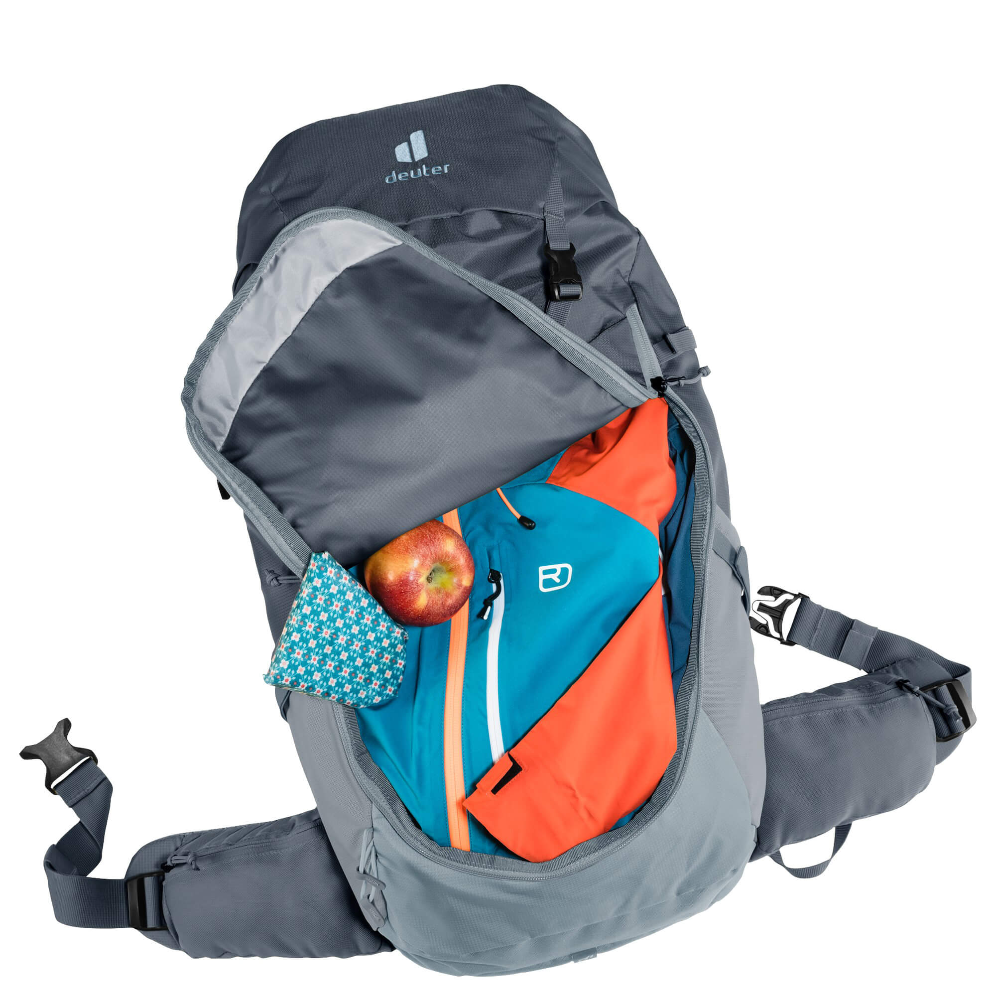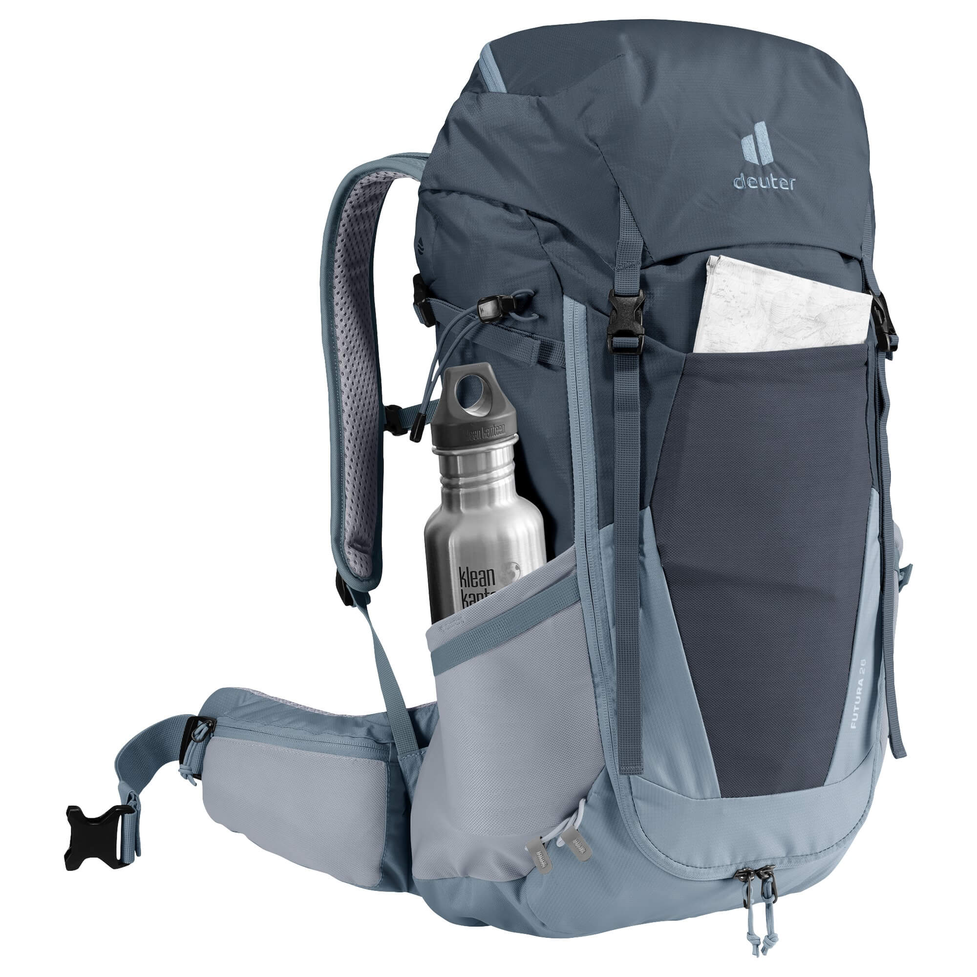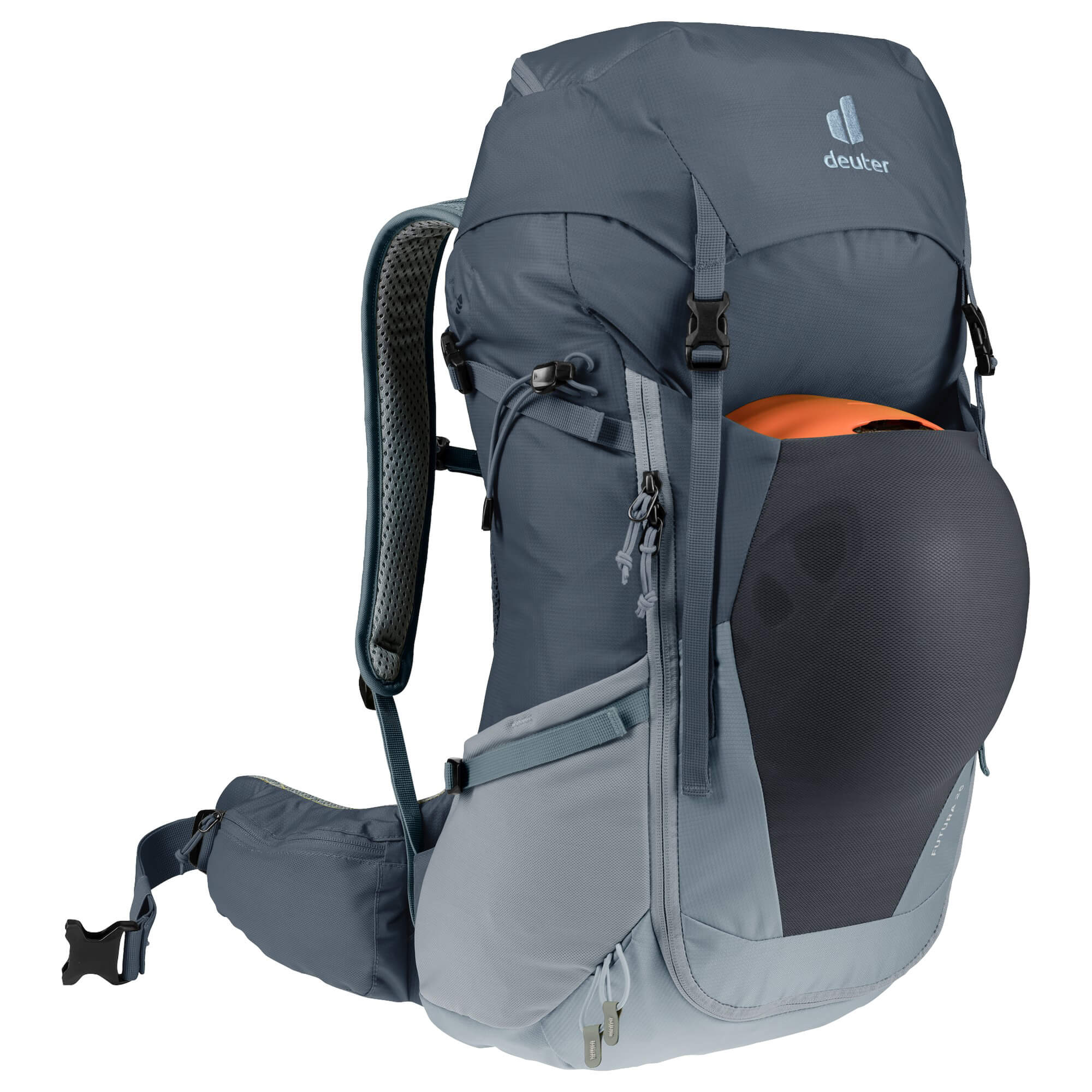 Discover the Deuter Futura 26 hiking backpack in the elegant color graphite-shale, specifically designed for longer day hikes and multi-day treks. This backpack combines high carrying comfort with thoughtful design, allowing you to fully focus on your outdoor adventures.