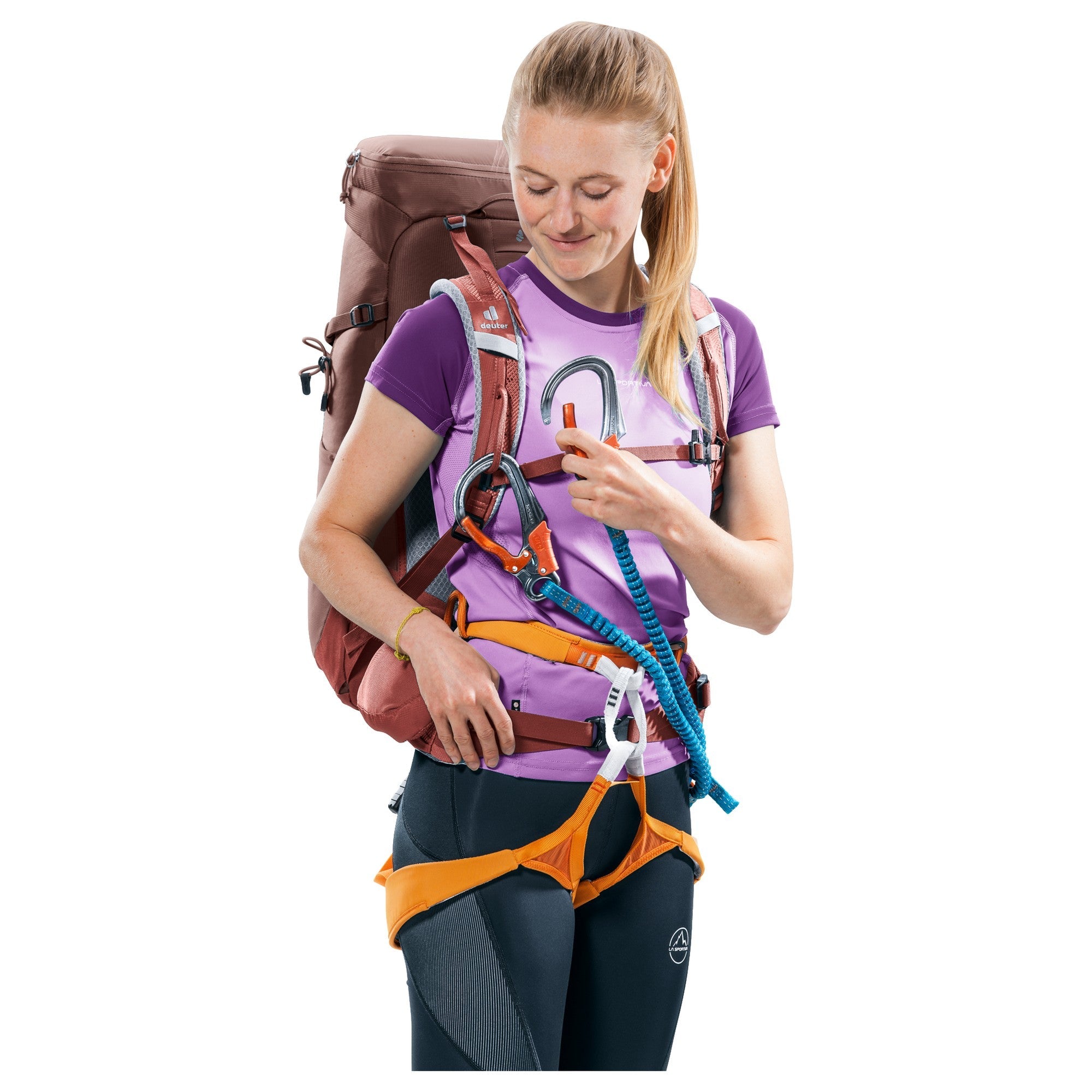 - Adjustable, movable shoulder straps guarantee a custom fit and provide a carabiner attachment for your via ferrata set.