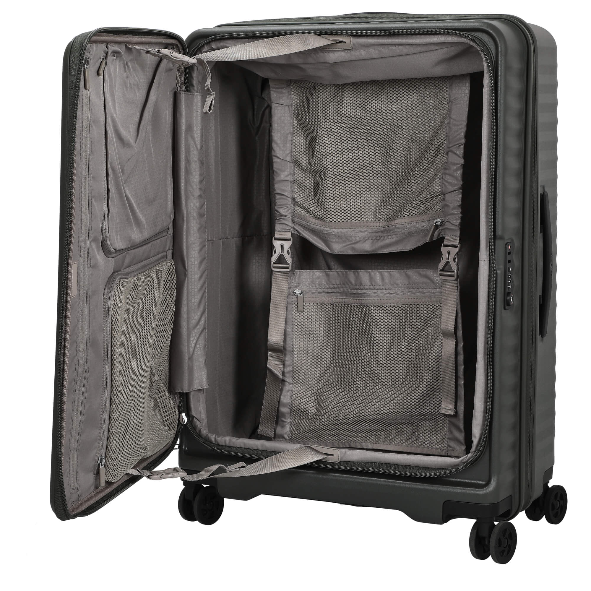 Discover the Celestra FA Collection by Echolac, which impresses with high-quality craftsmanship and thoughtful features. This set in the elegant color deep olive not only offers maximum storage space but also serves as a stylish companion for your travels.