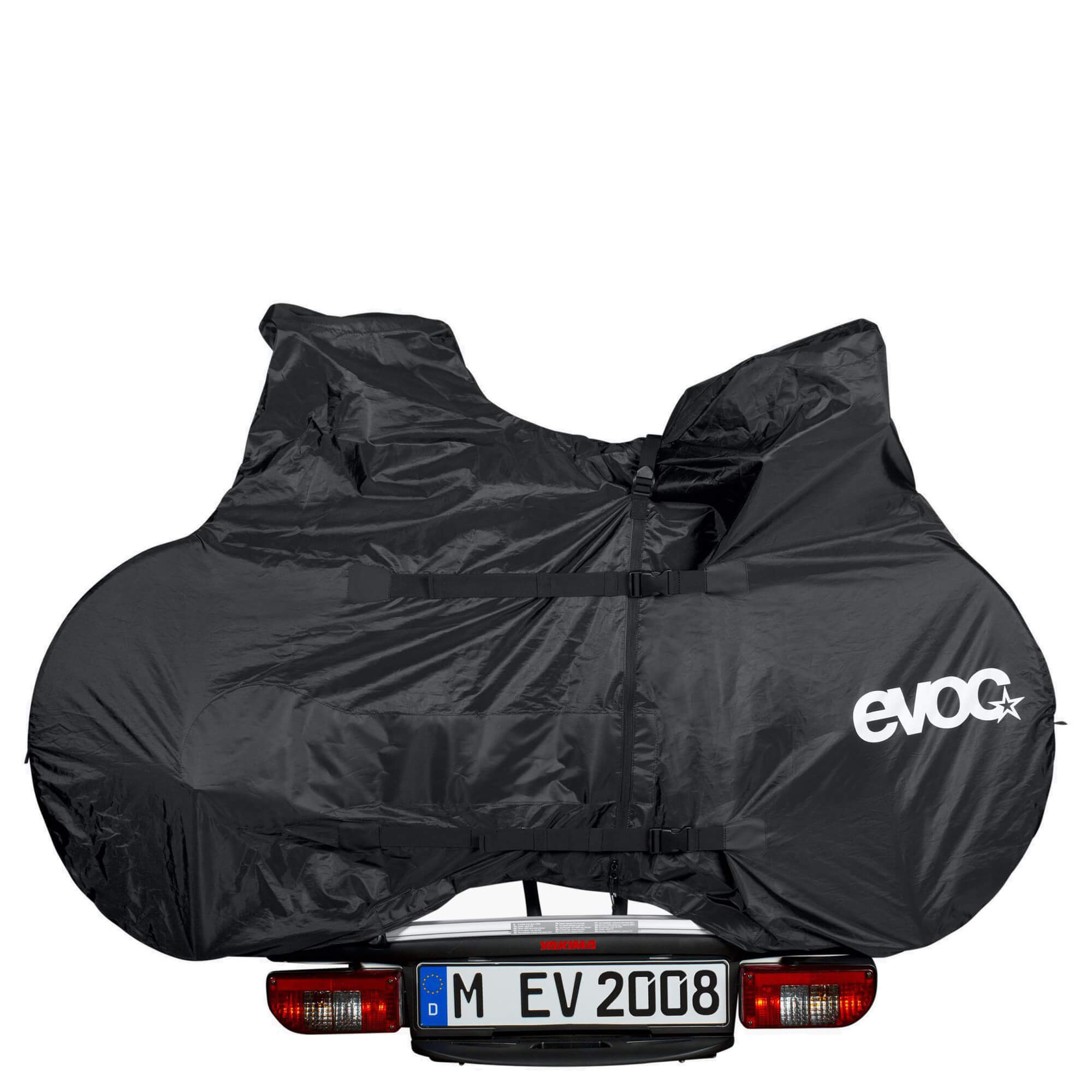 Discover the Evoc Bike Rack Cover Road in the elegant color black – the ideal solution for safely transporting your road bike on the car rack. This thoughtfully designed travel cover was specifically developed for road bikes and impresses with its durability and user-friendliness.