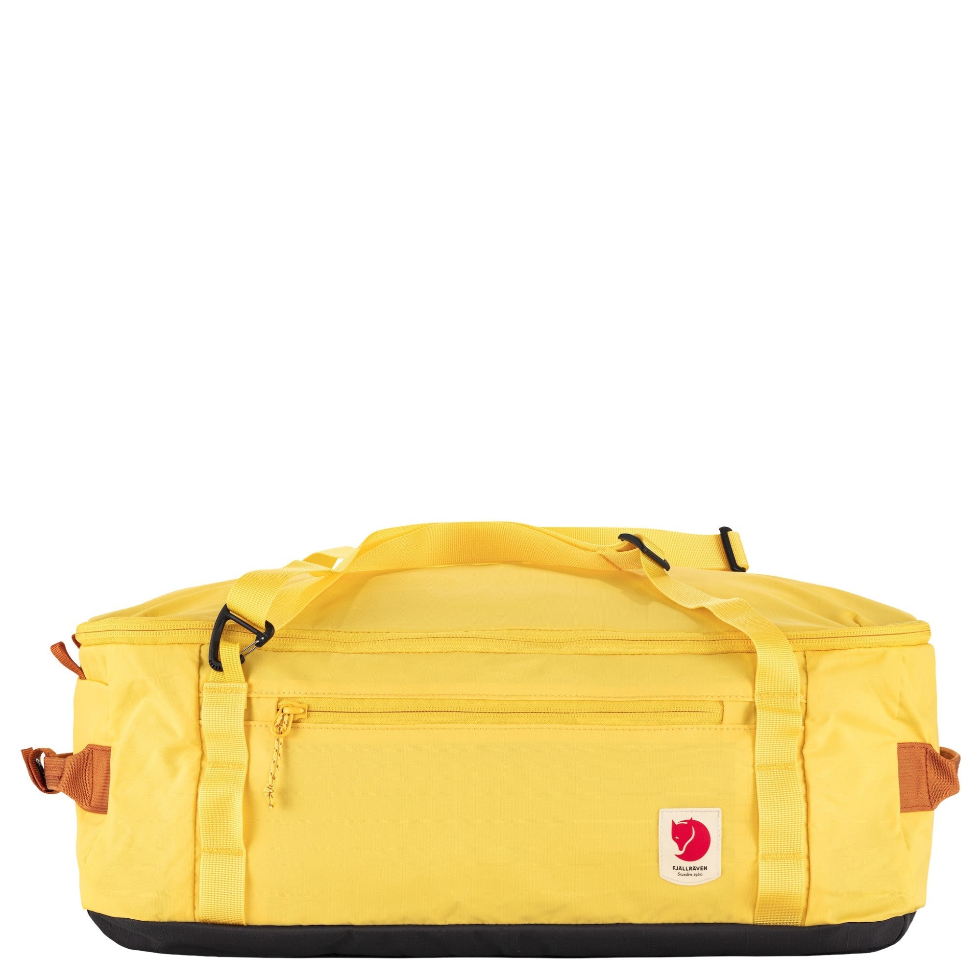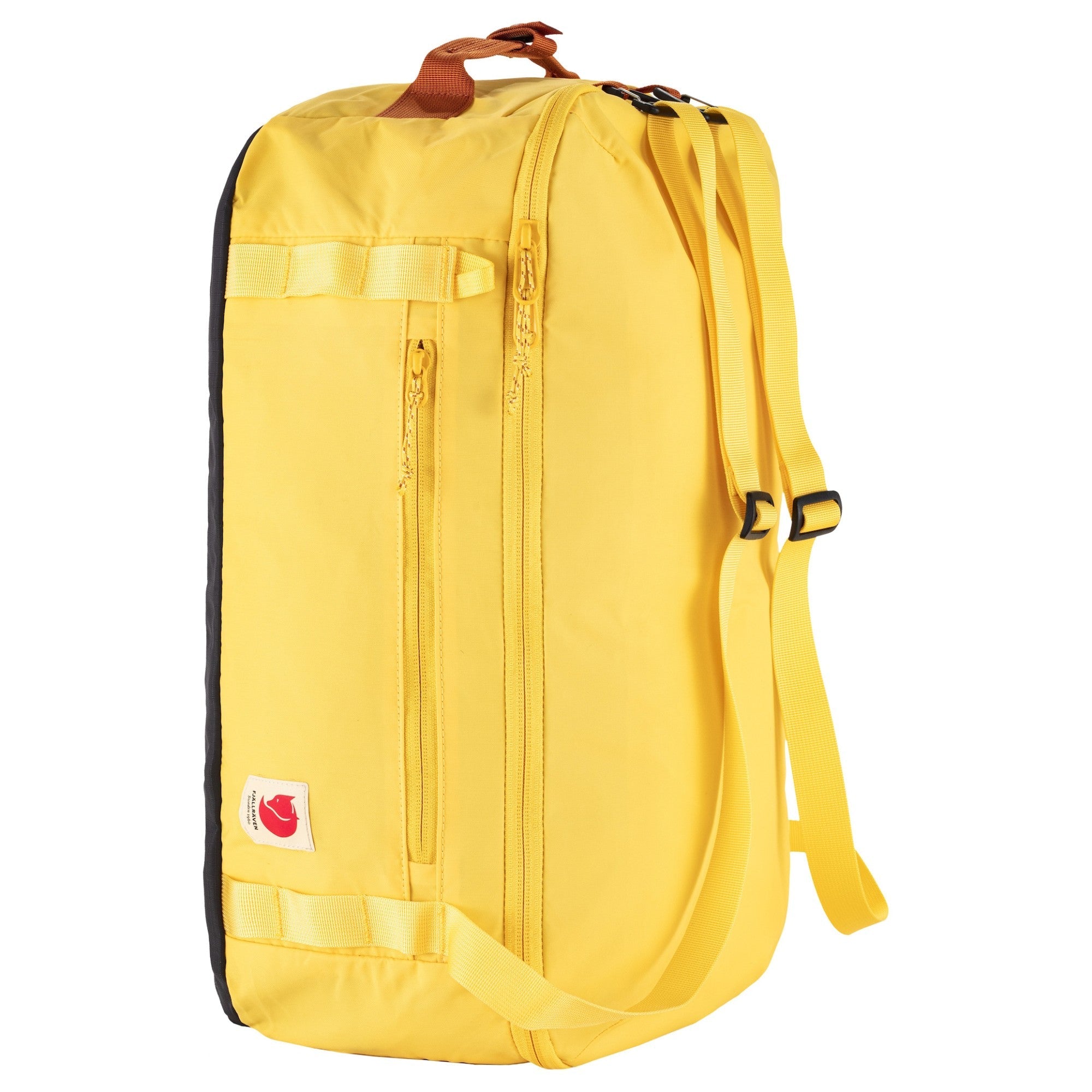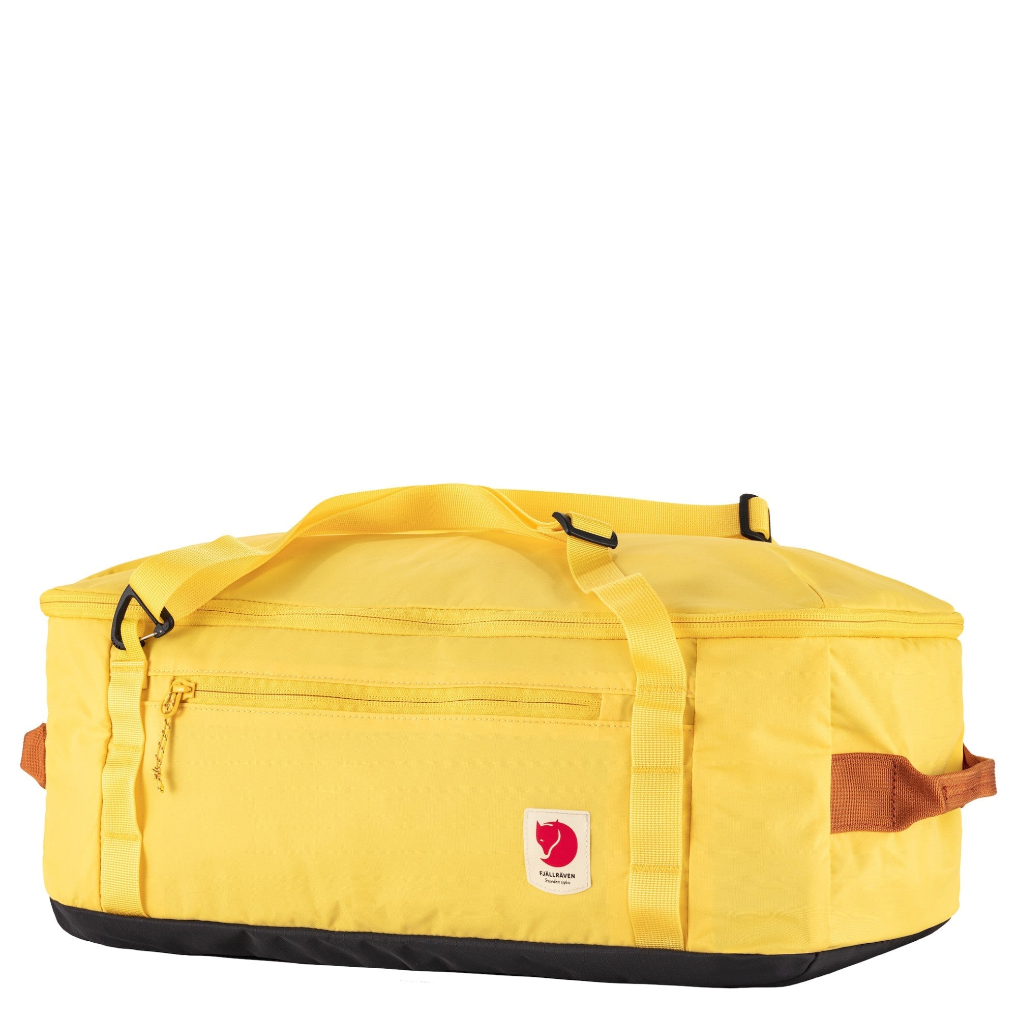 Discover the Fjällräven High Coast Duffel 22 in the vibrant color mellow yellow, the ideal travel bag for your adventures, whether it's a short weekend trip or a visit to the gym. This lightweight and eco-friendly bag is made from recycled nylon and impresses with its versatile carrying options. Carry it comfortably by hand, over your shoulder, or as a backpack.