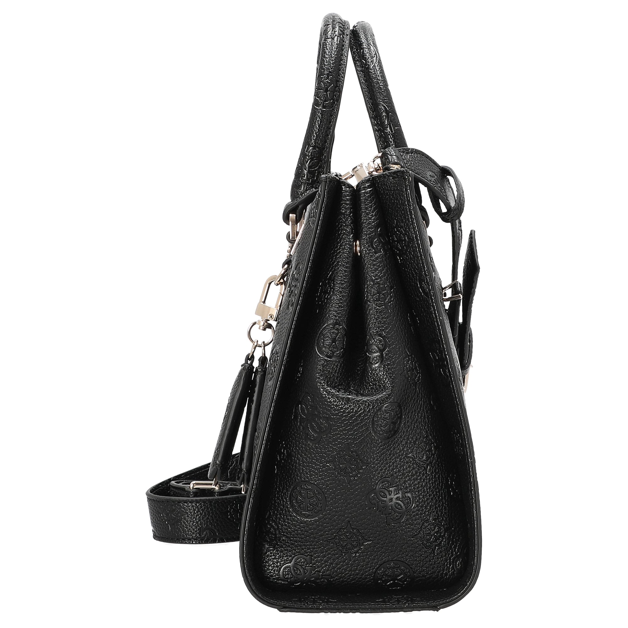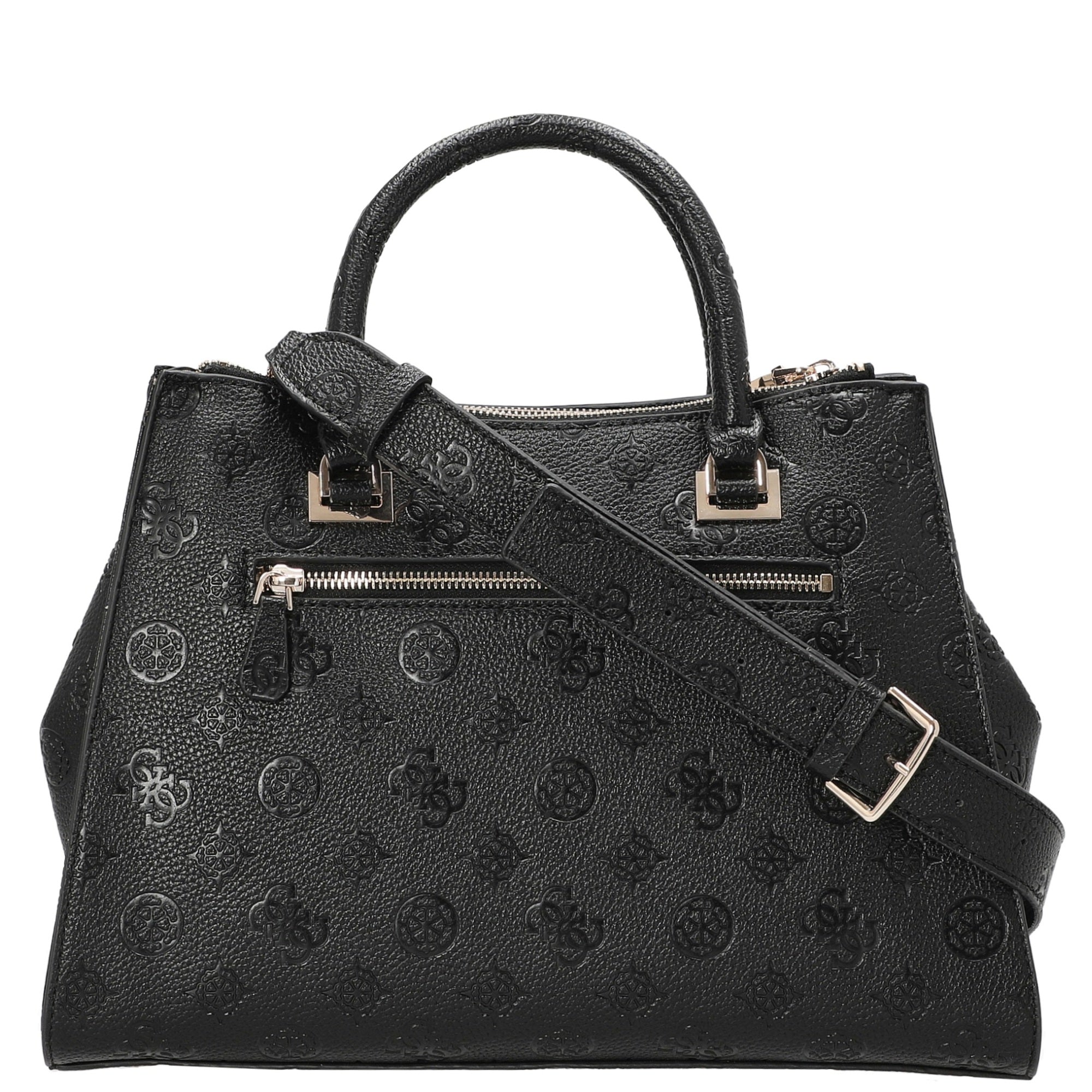 The Guess Cresidia II Society Top-Handle Bag in elegant black combines fashionable design with practical functionality – a must-have for style-conscious women who value high-quality details. The distinctive logo embossing on the textured material gives the bag a timeless elegance that effortlessly complements various outfits.