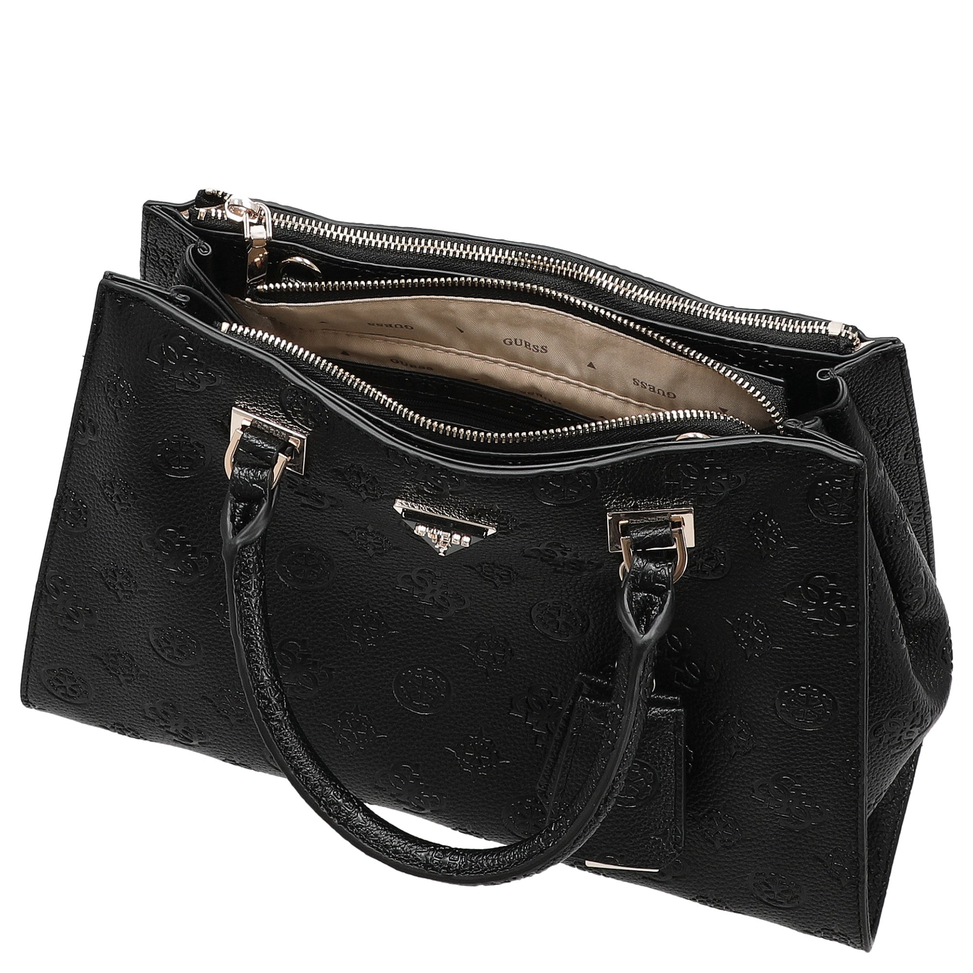 Whether at the office or during leisure time – the black Guess top-handle bag is a stylish companion that combines comfort and chic in one accessory.