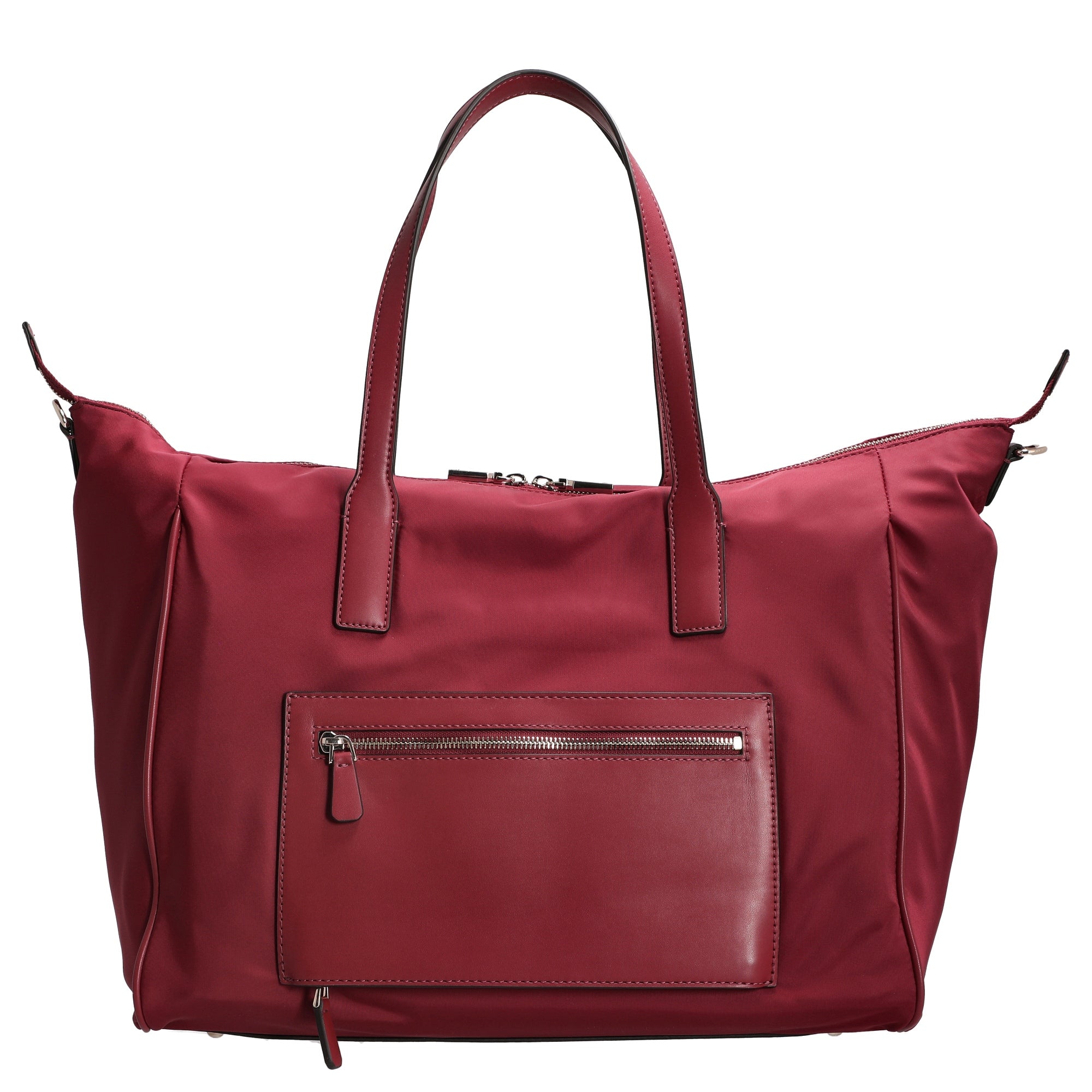The Guess Follie Carryon Large Tote in rust red is the perfect combination of stylish design and thoughtful functionality. This high-quality travel bag confidently accompanies fashionable women on business trips or weekend getaways and ensures optimal organization with its spacious interior.
