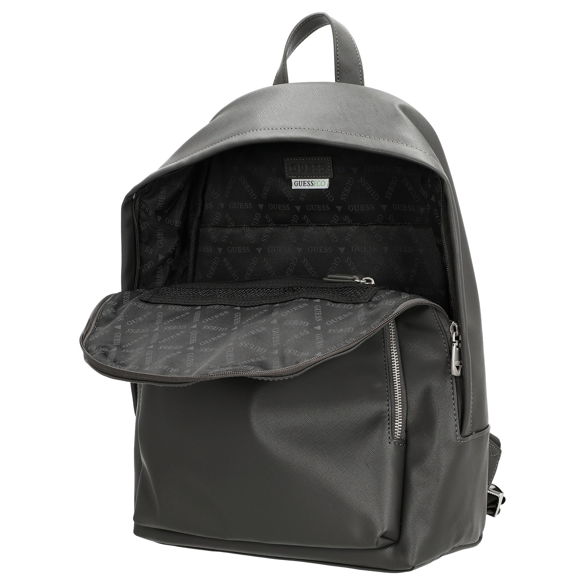 - Elegant Brand Logo: The metallic Guess logo on the front emphasizes the high-quality character of this backpack.