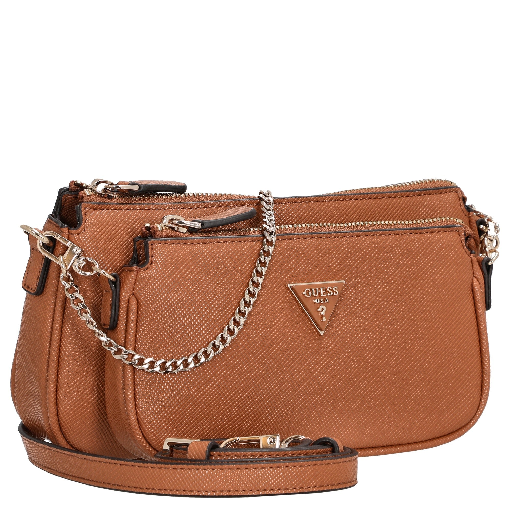 Whether shopping in the city or meeting friends – the Guess Noelle II DBL Pouch in light cognac complements any outfit with a touch of luxury and timeless elegance.