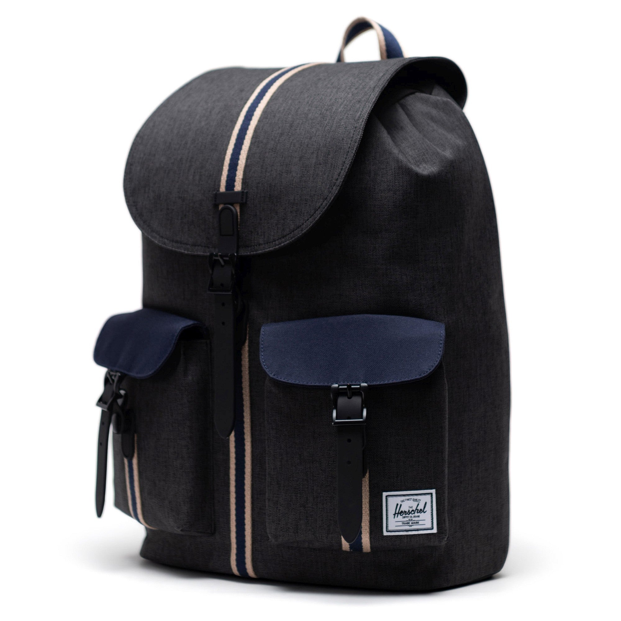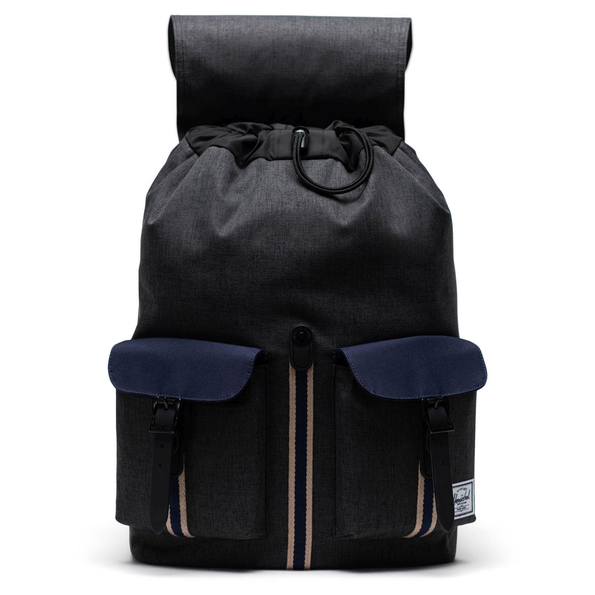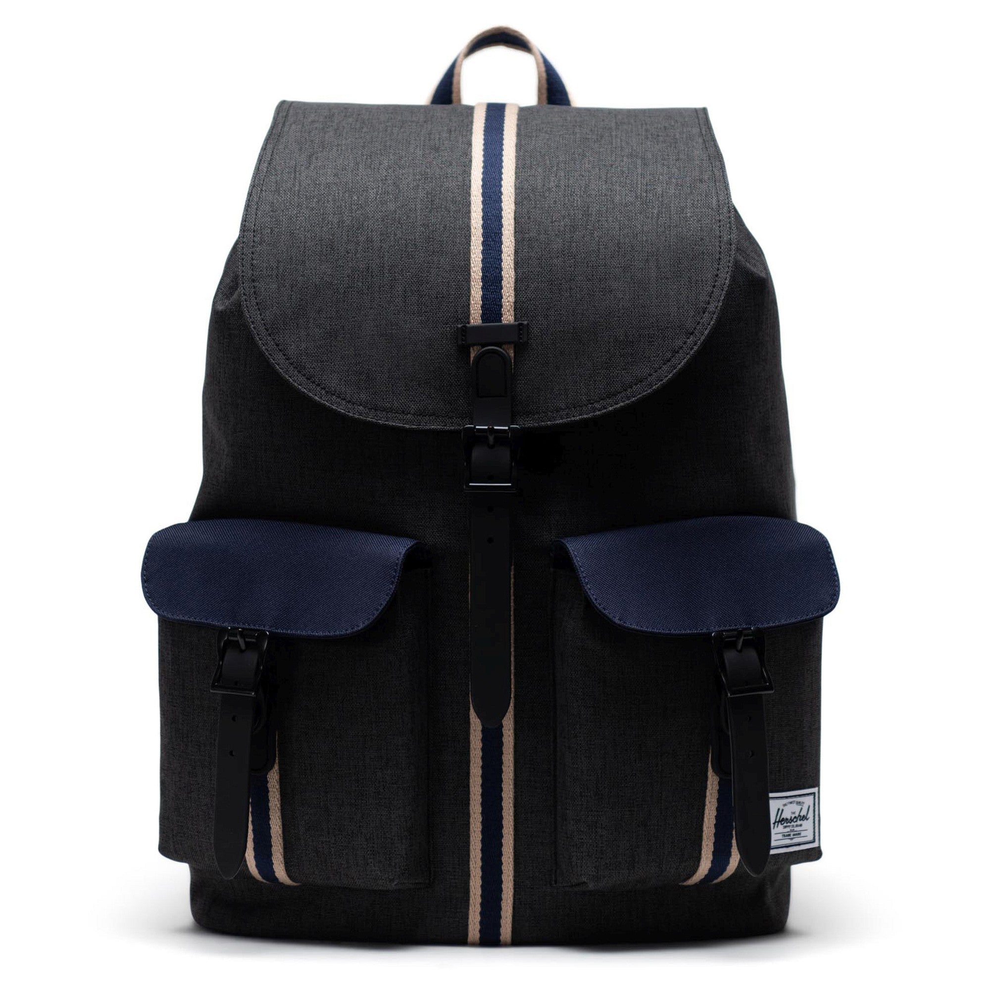 Discover the Herschel Dawson Backpack in the elegant colorway black crosshatch/peacoat, which is not only stylish but also highly functional. This backpack combines modern design with practical details that make it the ideal companion for everyday use.