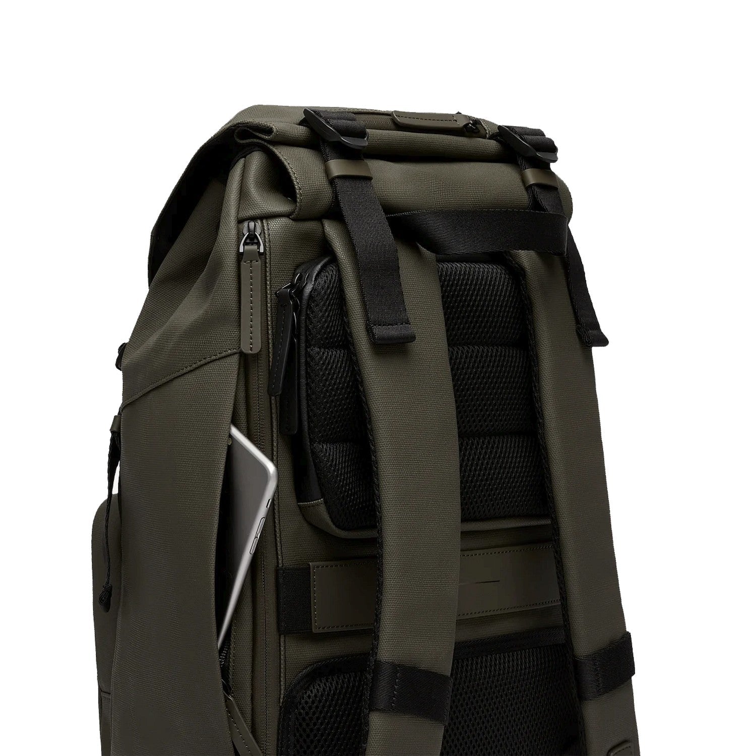 The water-repellent backpack is made from sustainable, recycled cotton canvas that has been treated with a special wax seal. This makes it not only water-repellent but also extremely durable, ensuring your valuables are optimally protected.