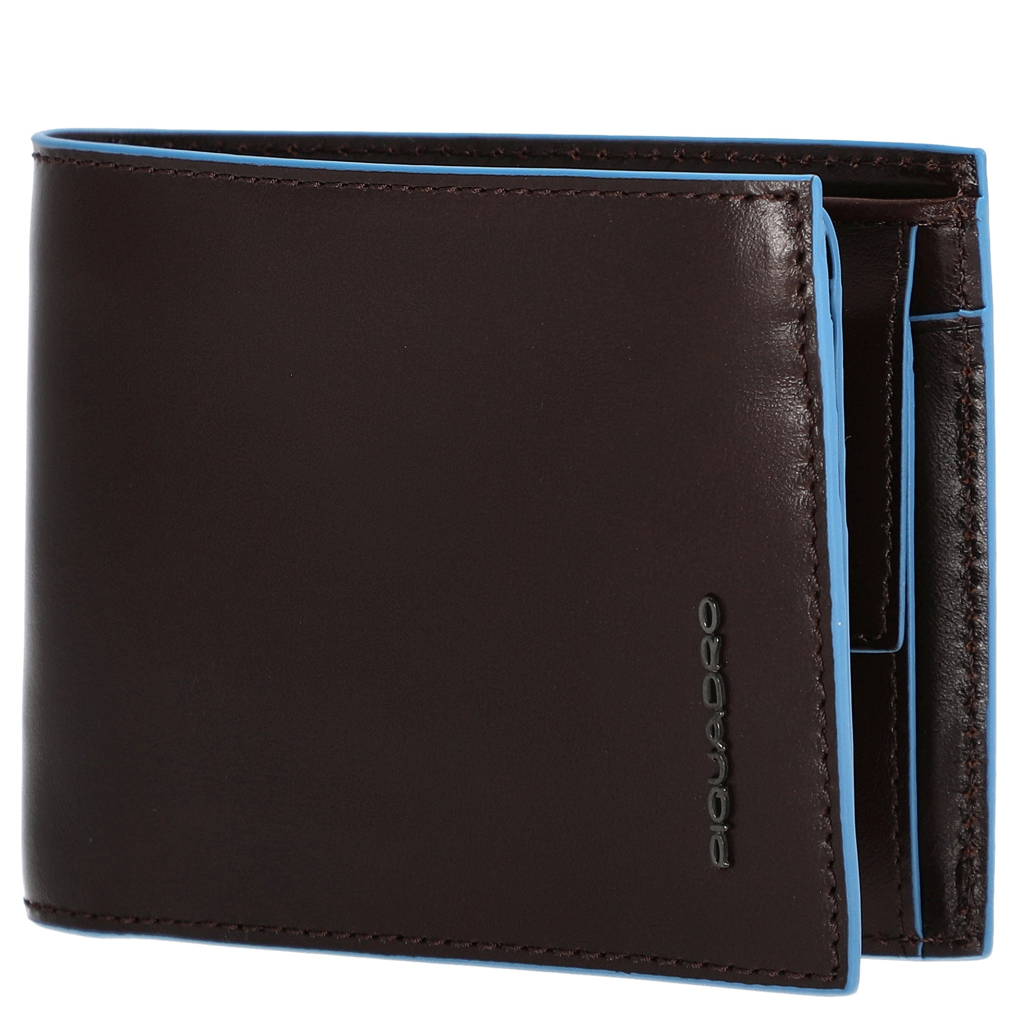 The Piquadro Blue Square men's wallet in elegant mahogany impresses with high-quality calf leather featuring traditional mineral tanning, which preserves the natural beauty of the leather for years. The clean lines and hand-dyed light blue edges give the wallet a modern business character that stylishly sets it apart from other models.