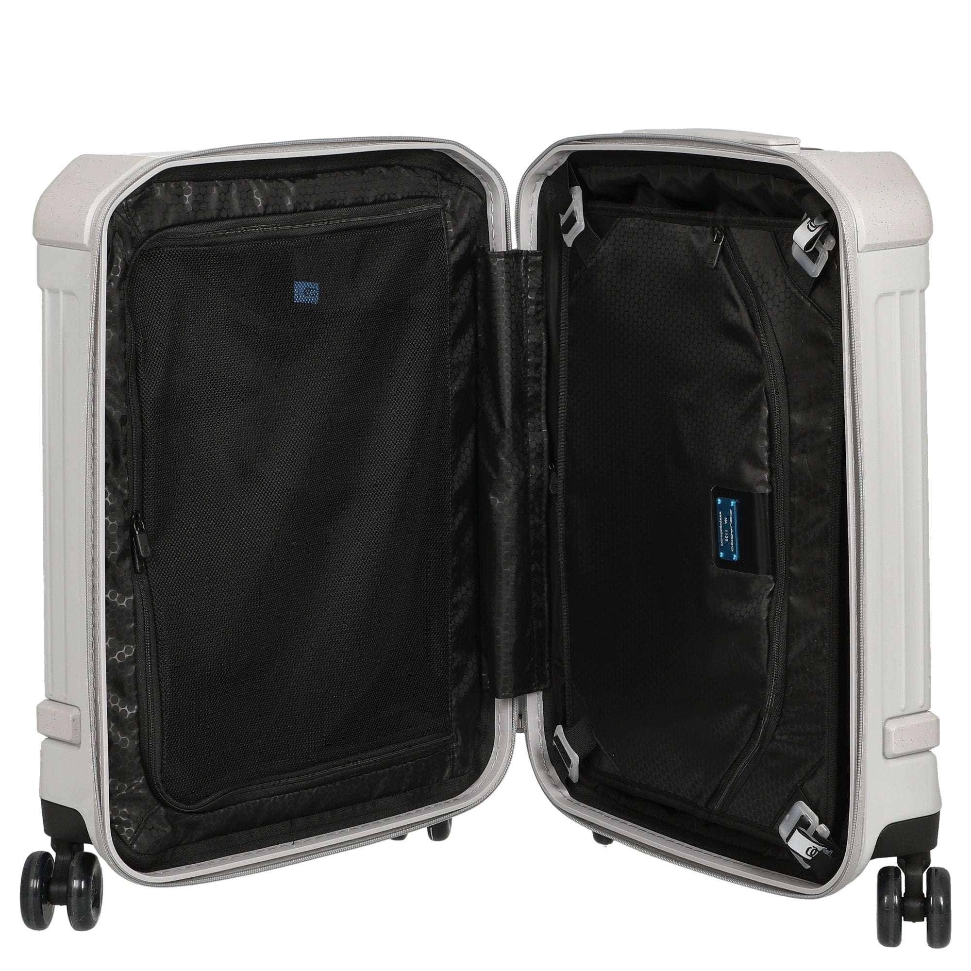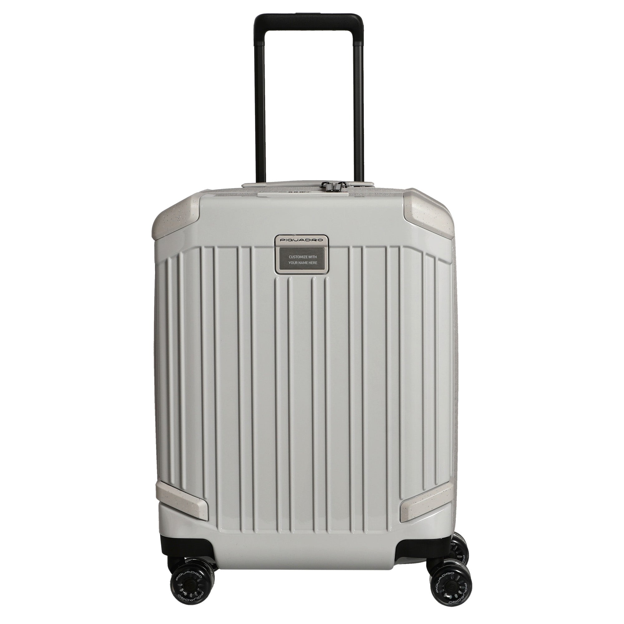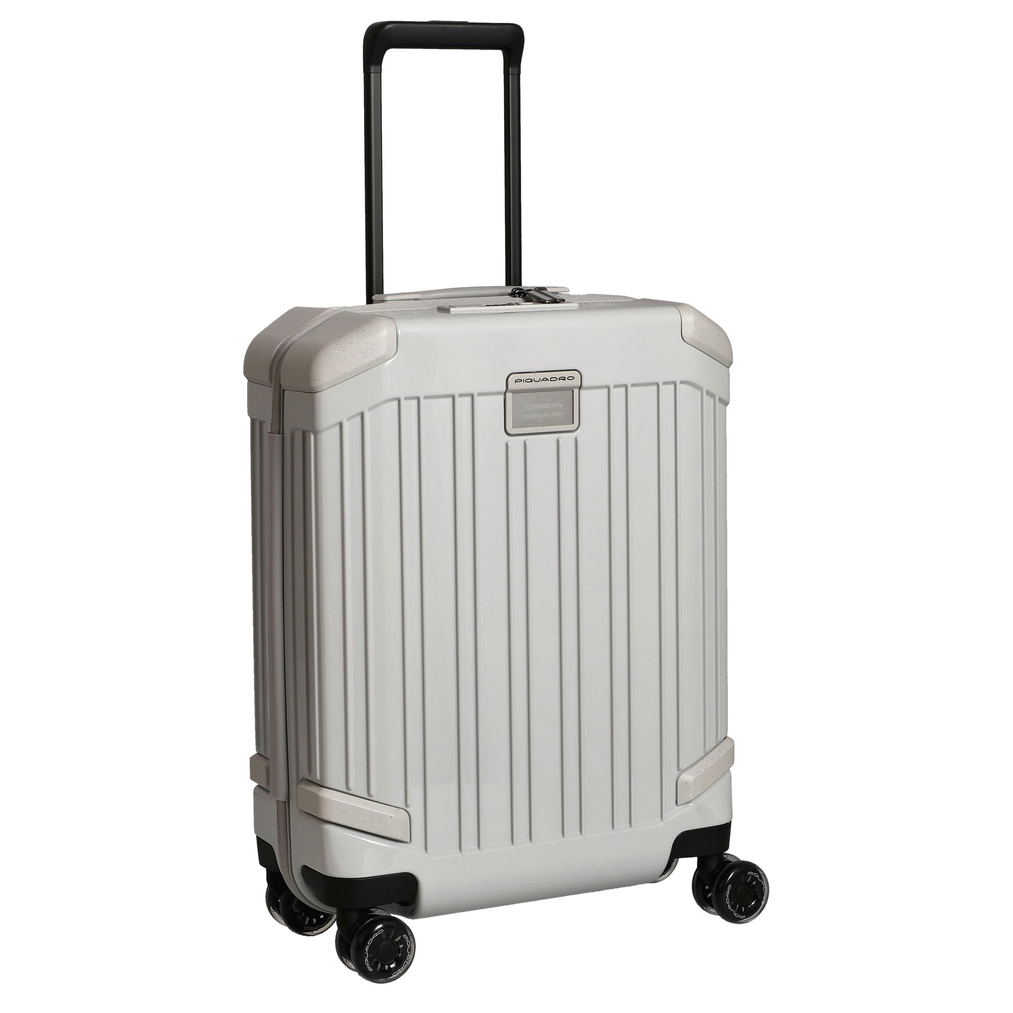 The Piquadro Pop Cabin Trolley 4 Wheels is a functional carry-on suitcase in elegant white, distinguished by its robust construction and thoughtful details.