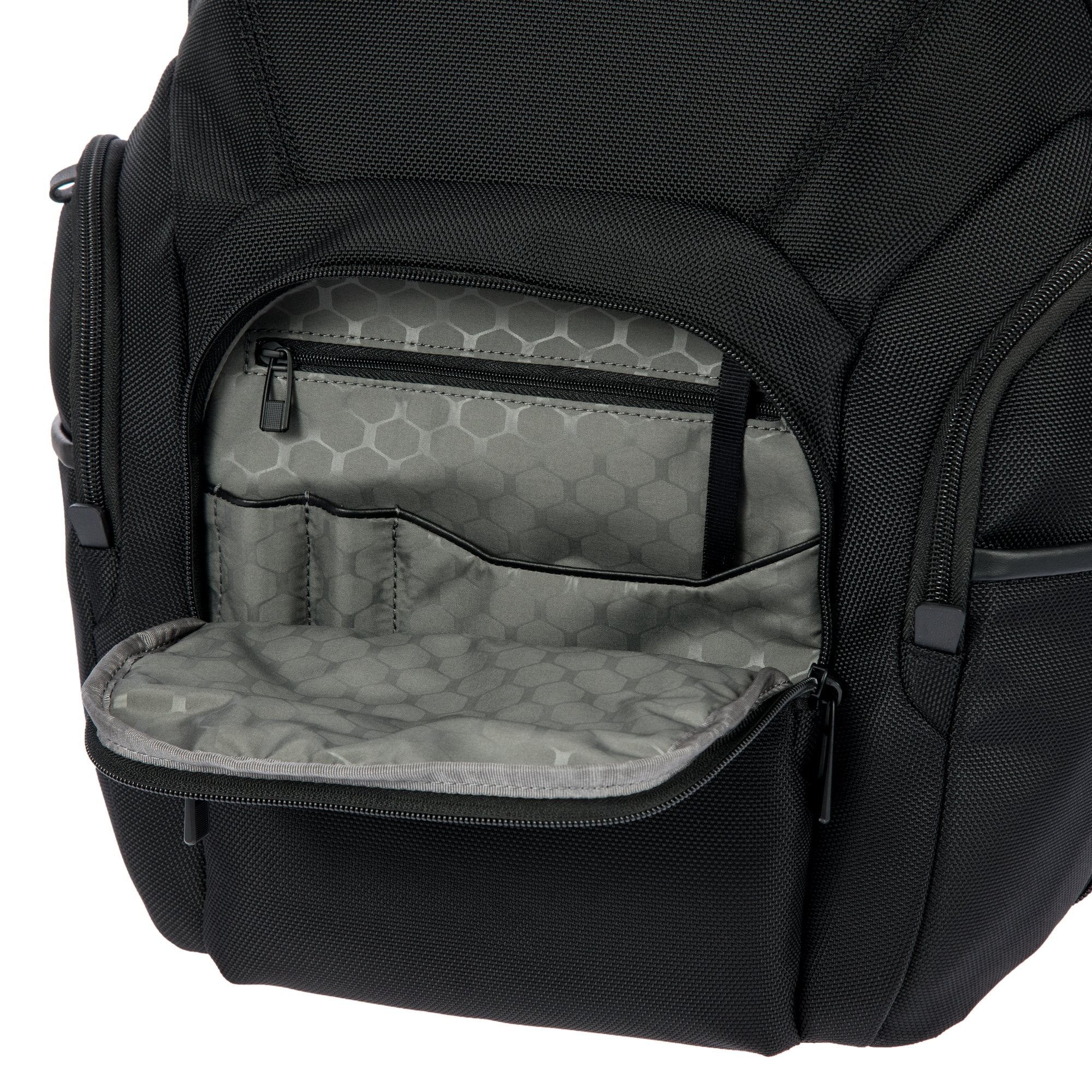 - Front pocket with business organizer – For pens, cards, and small accessories