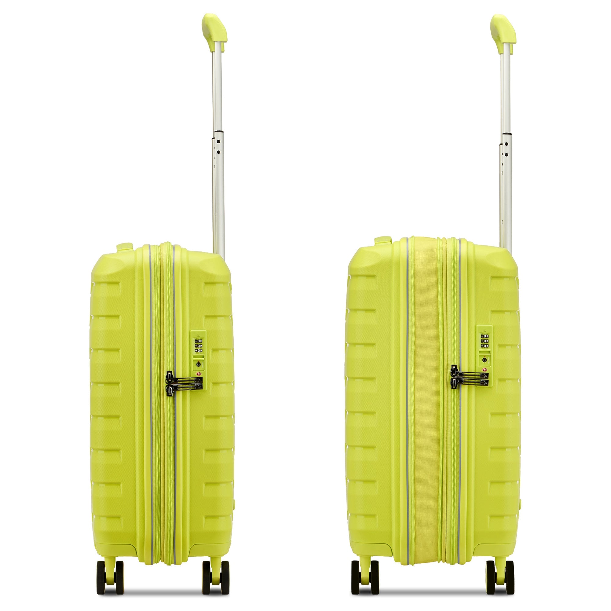 Experience the Roncato Skyline 2.0 - 4-Wheel Cabin Trolley S in a trendy **cyber lime** color that impresses not only with its modern design but also with its thoughtful functionality. With an expandable volume of 40L to 50L, this trolley is the perfect travel companion, whether for a short trip or longer journeys.