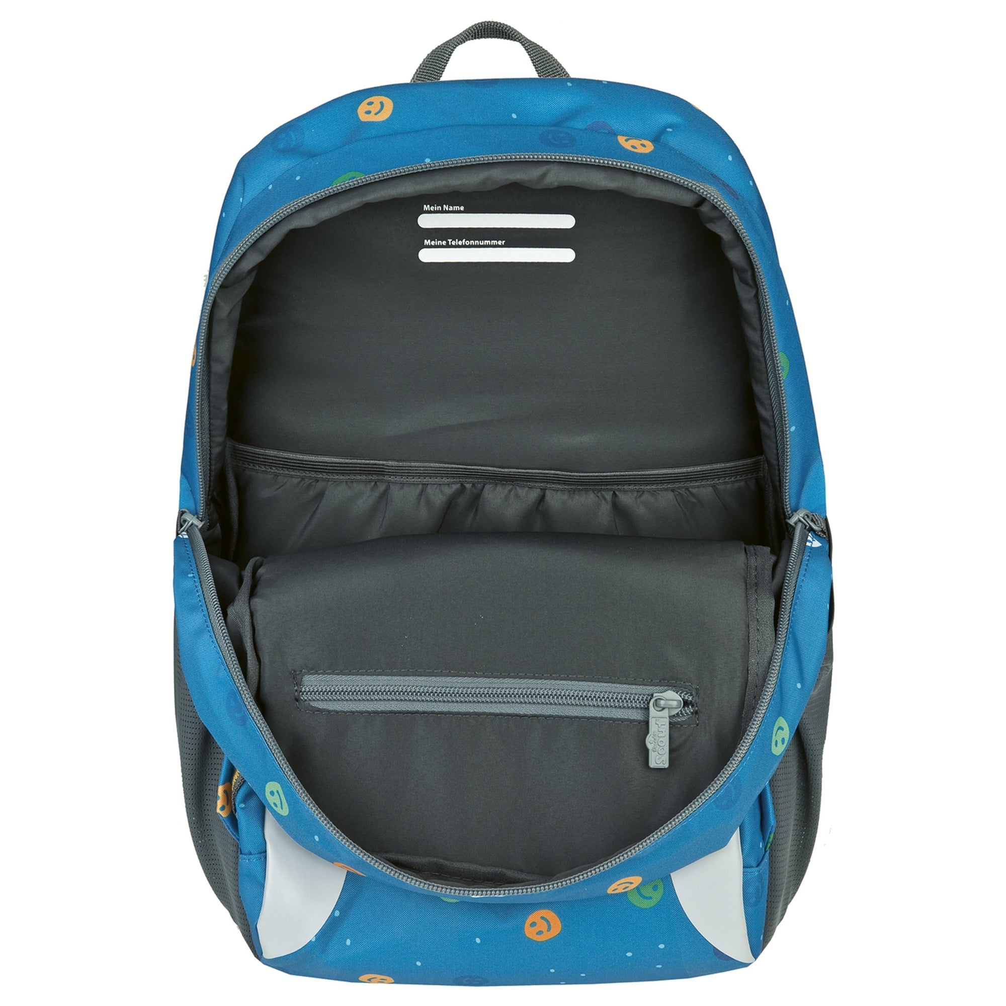 The Scout Adventure children's backpack in a cheerful smiley design combines practical use with high wearing comfort for children of kindergarten age.
