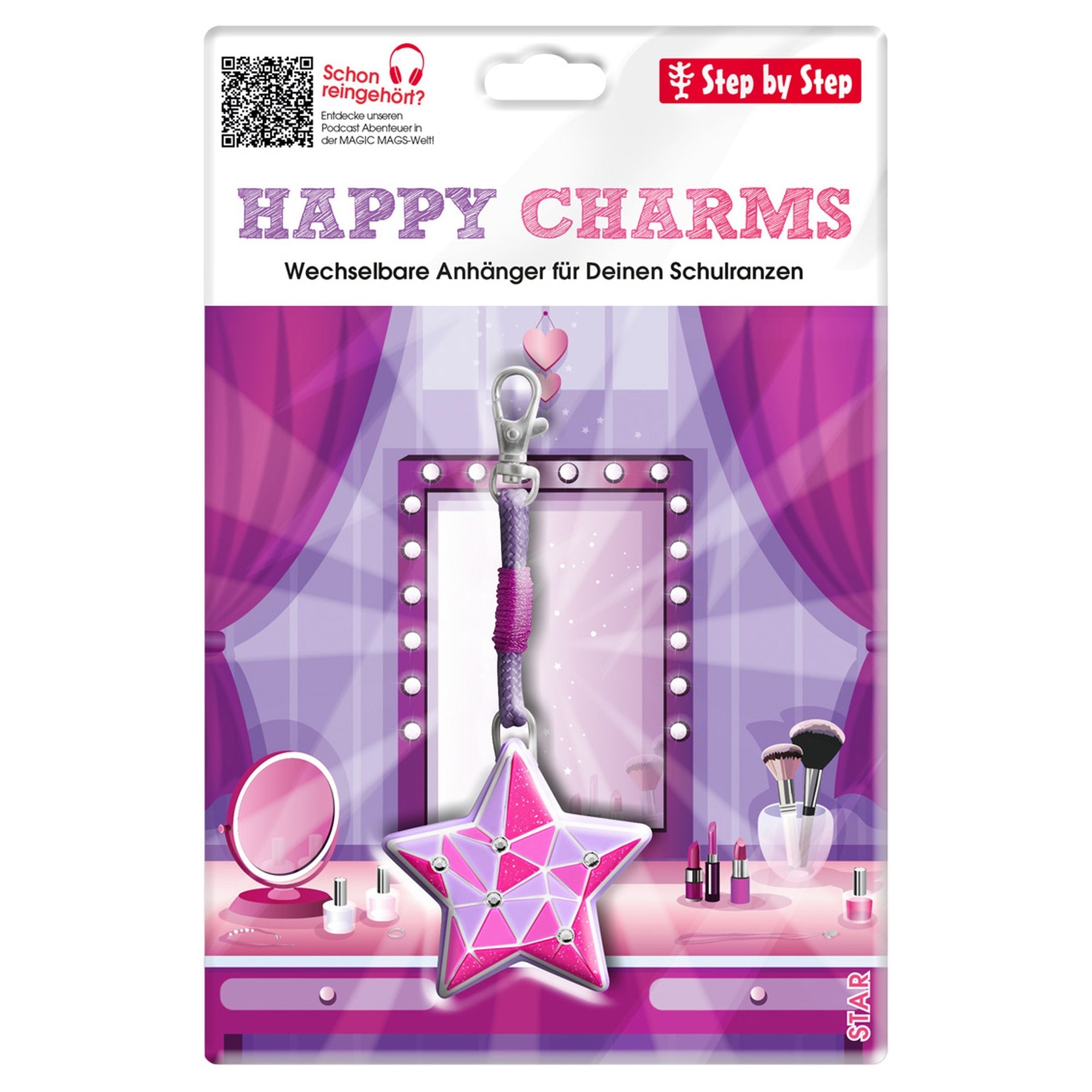 The Step by Step HAPPY Charms star-shaped pendant is the perfect addition to your child’s school backpack. With its practical design, the pendant can be flexibly attached to the loops on the lid or the front pocket, adding a personal touch and unique style.