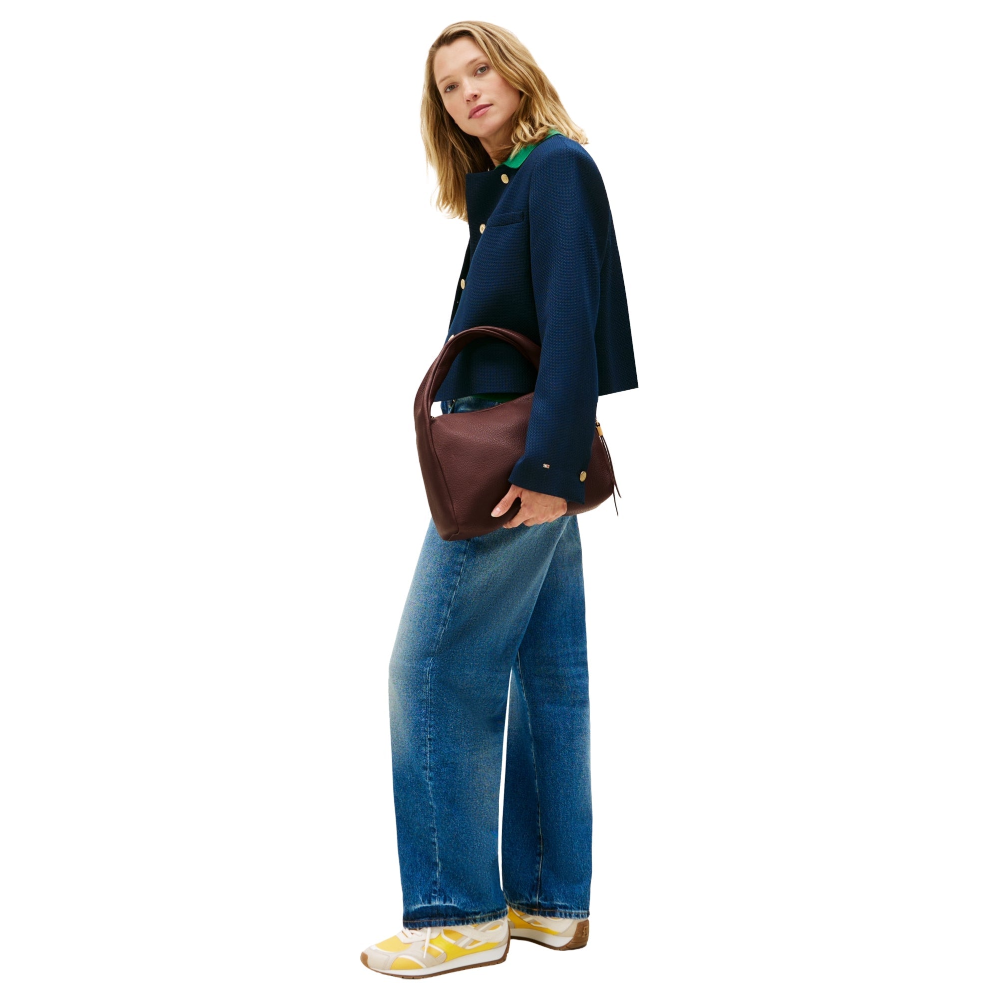 The Tommy Hilfiger City Leather Shoulder Bag in rich walnut combines stylish design with practical everyday usability. With its compact size, it is the perfect companion for fashionable women who value high-quality details and versatile combinations.