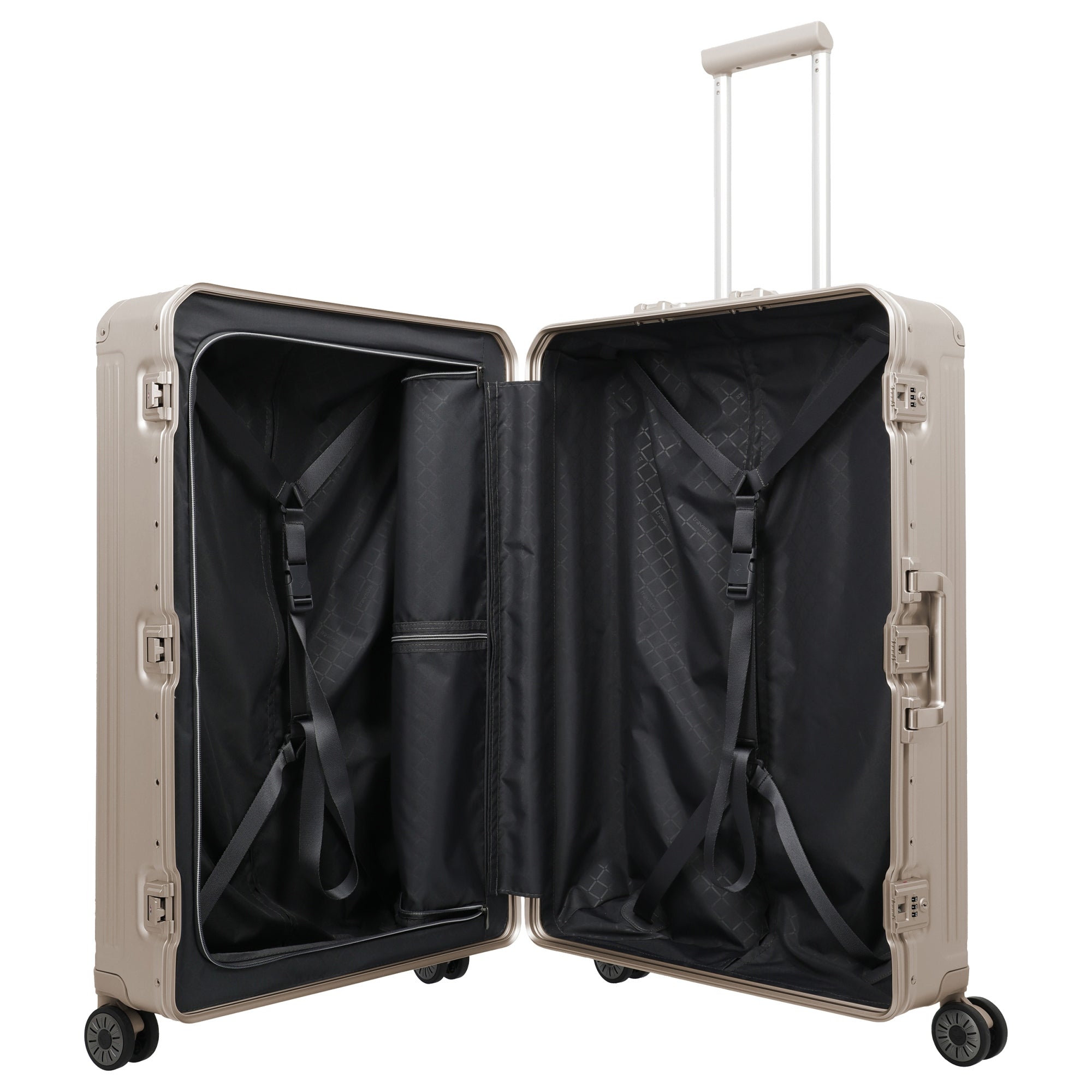 - Spacious main compartment with practical dividers and packing straps for organized luggage storage