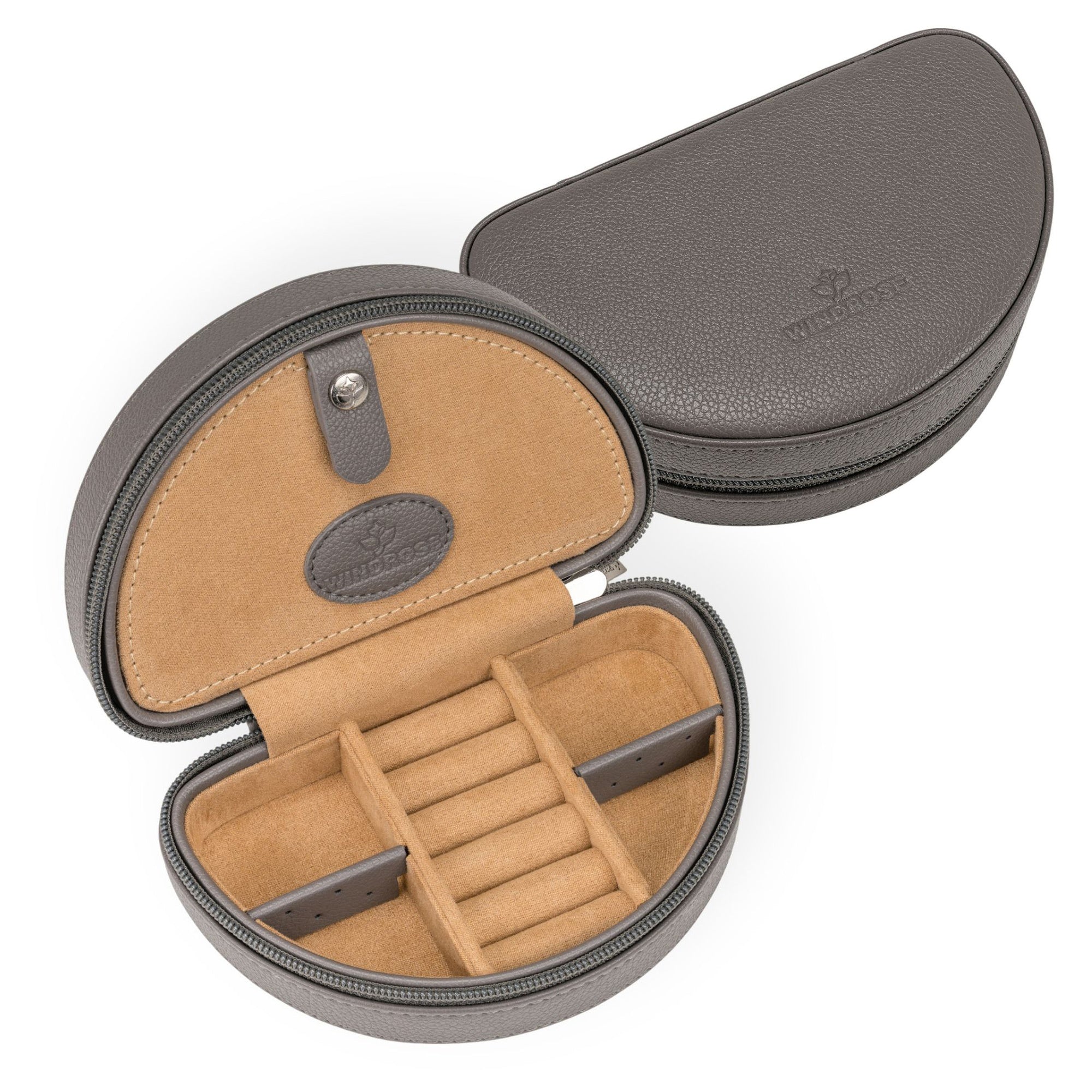 The Windrose Marvella Jewelry Case in ash impresses with its elegant design and high-quality leather look, making it a stylish companion for everyday use and travel. Its compact size and practical zipper reliably protect your valuable jewelry and ensure optimal organization.