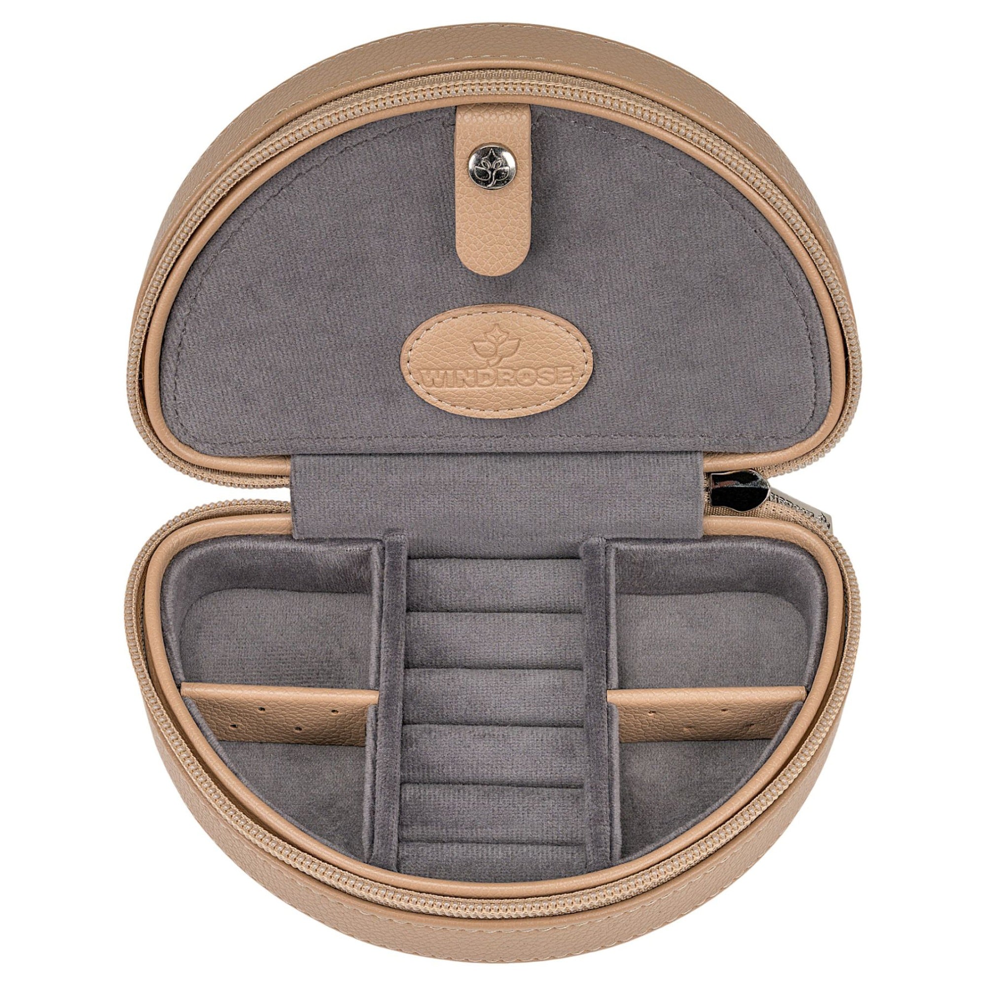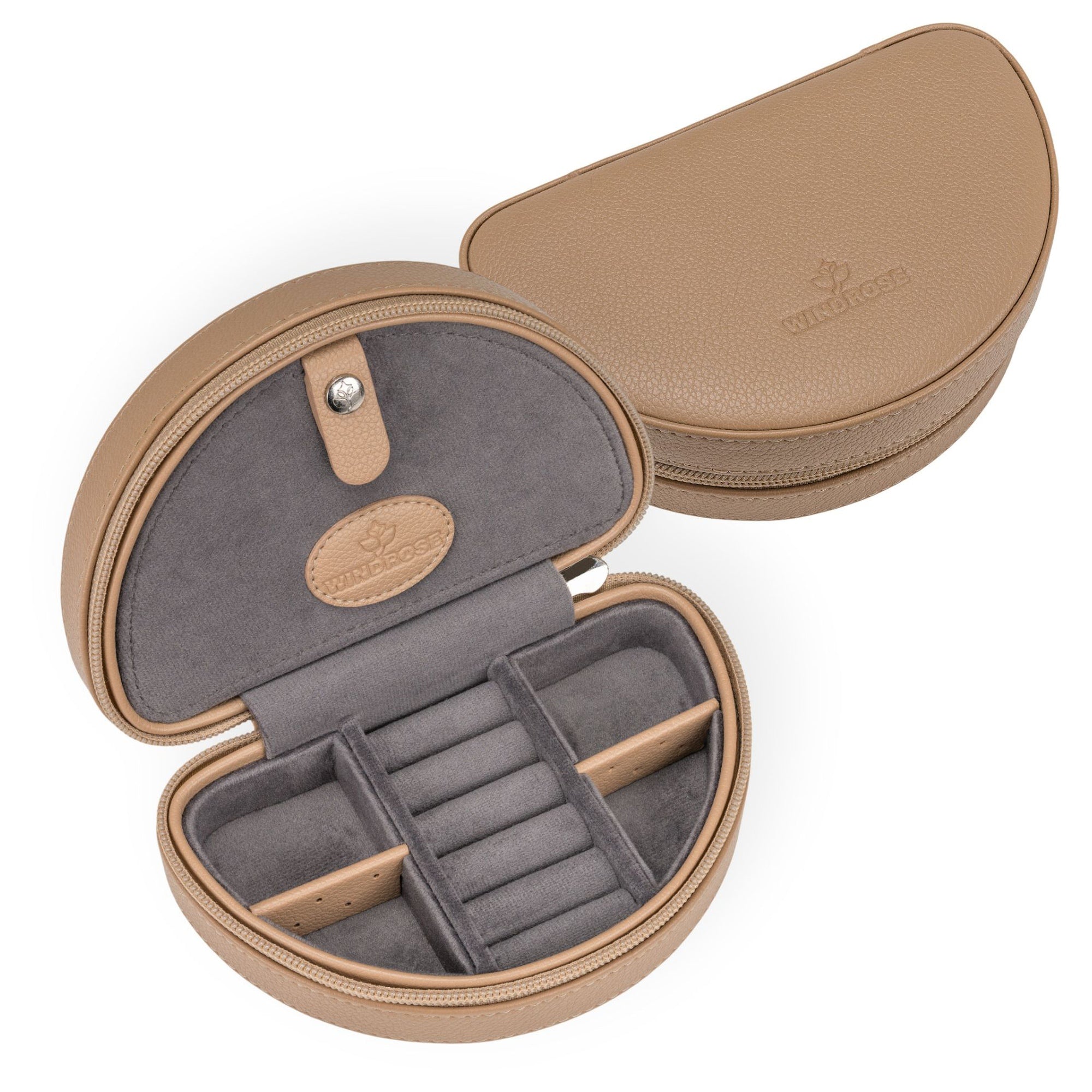This jewelry case from the Windrose Marvella collection combines stylish leather look with thoughtful organization and is the perfect companion for anyone who wants to transport jewelry safely and elegantly.