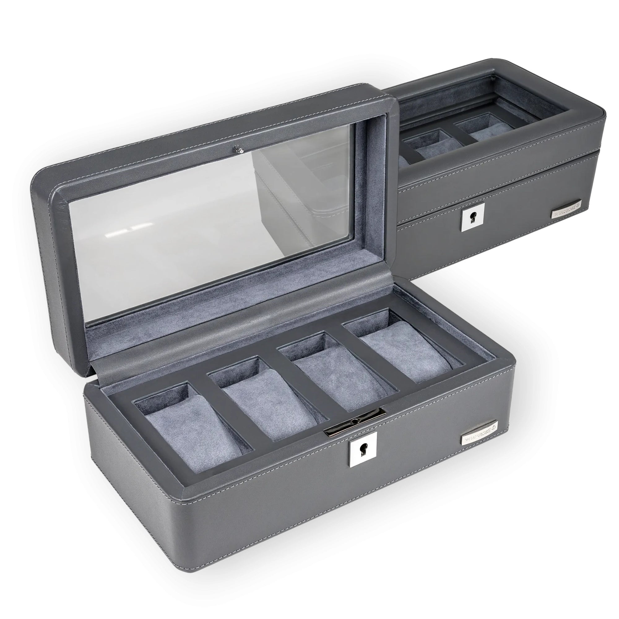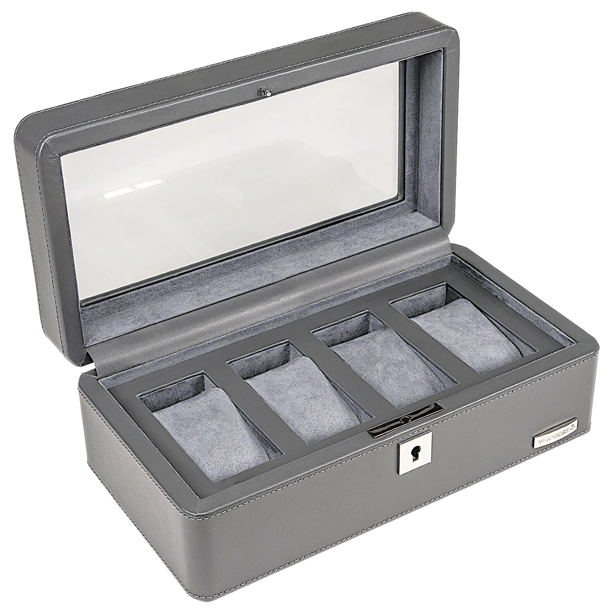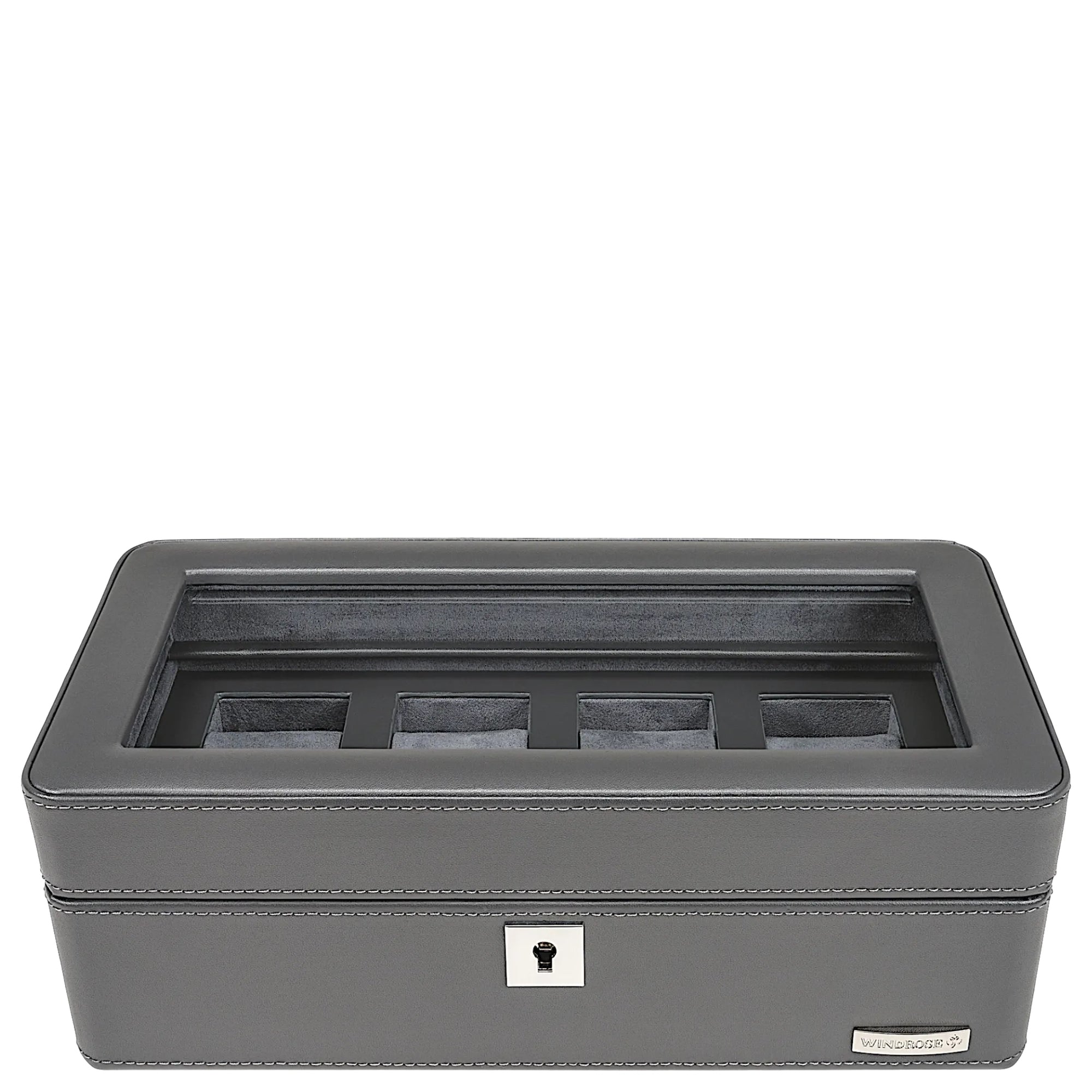 The Windrose Tempora Watch Case in elegant gray is the ideal storage solution for up to four watches. With its high-quality craftsmanship, the compact watch case combines functionality and timeless design, perfect for watch enthusiasts who value secure protection.
