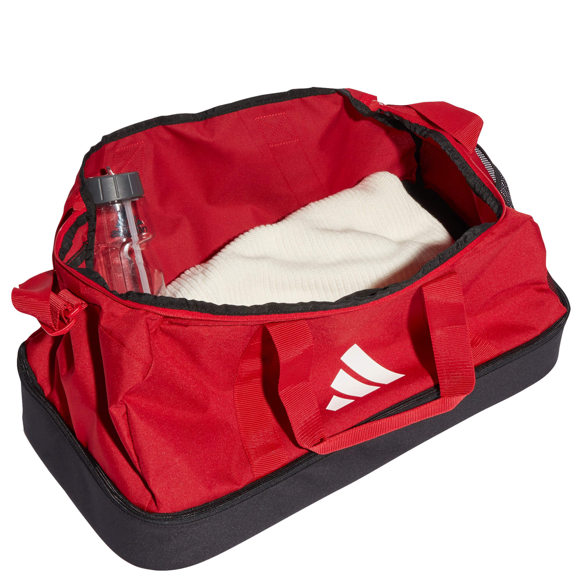 Die adidas Tiro League Sporttasche in kräftigem Rot mit schwarzem Bodenfach ist ein vielseitiger Begleiter für Sport und Freizeit. Mit einem Volumen von etwa 40 Litern bietet sie ausreichend Platz für deine Ausrüstung und ist funktional gestaltet.