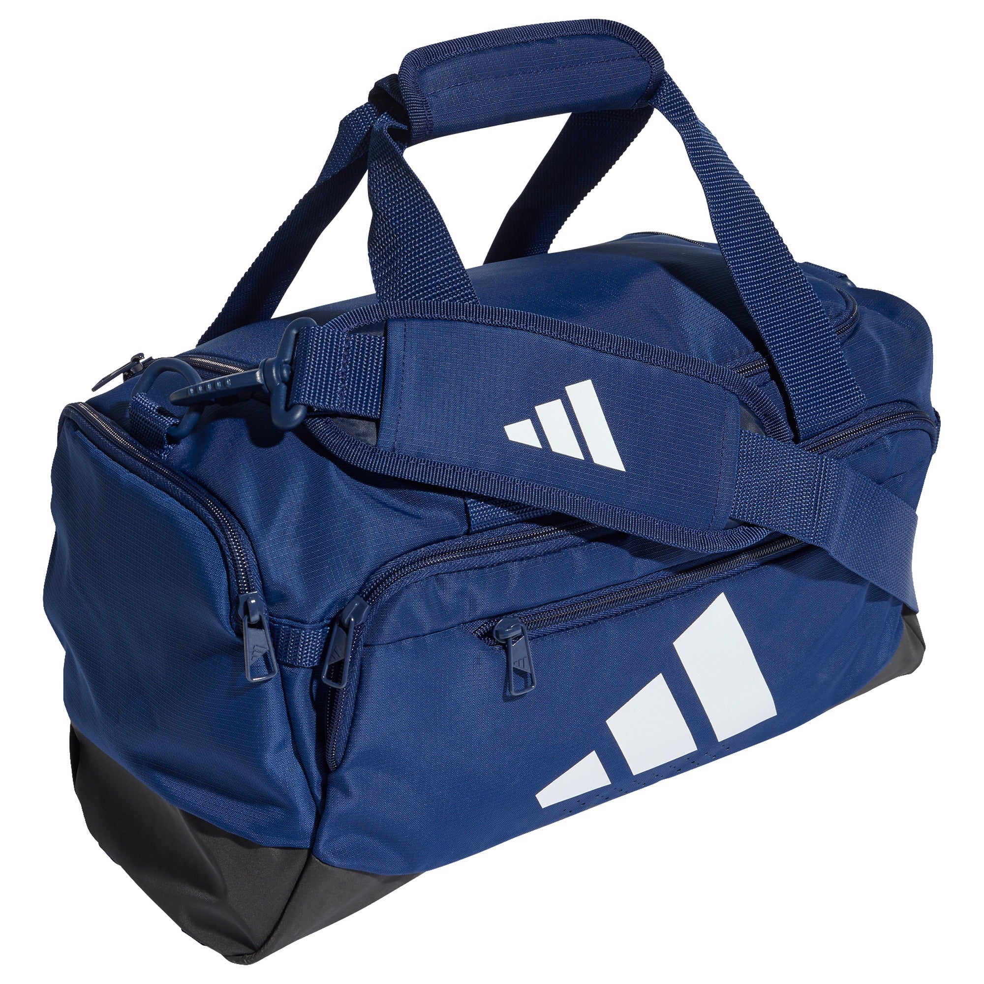 Die adidas Tra Def Duffle XS ist eine kompakte Reisetasche in Dunkelblau, die durch ihre robuste und funktionale Gestaltung überzeugt. Sie eignet sich besonders für kurze Trainings- oder Wochenendtrips.