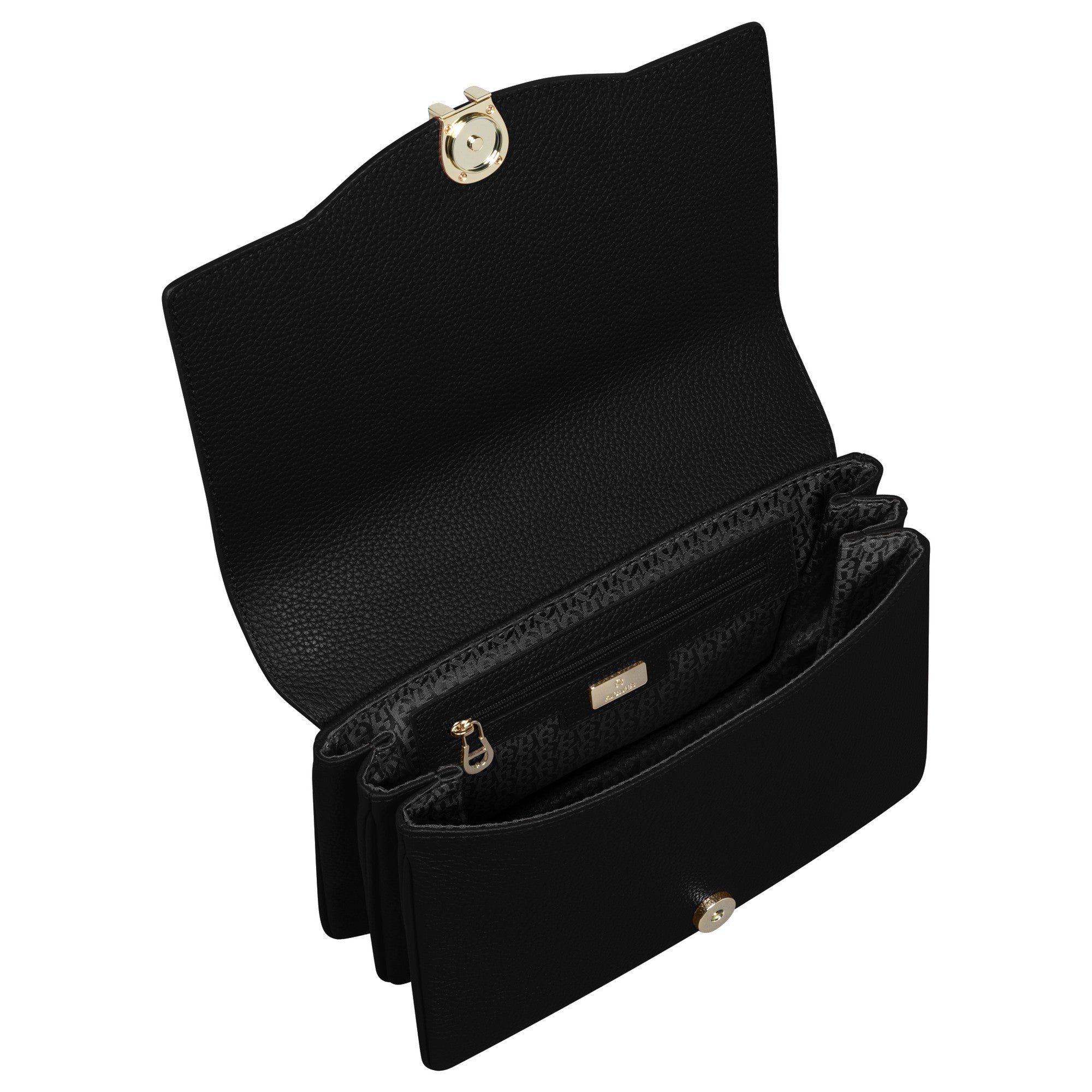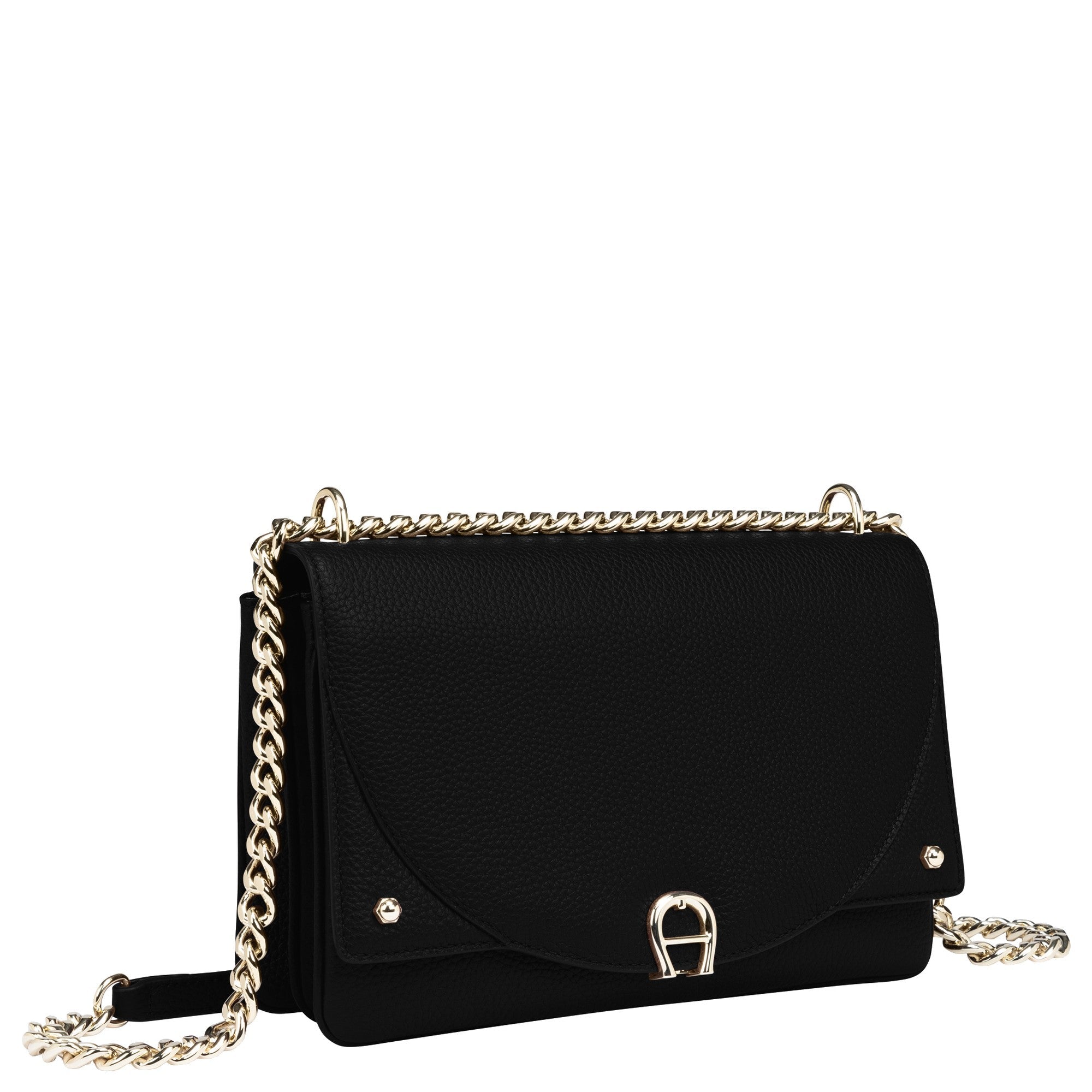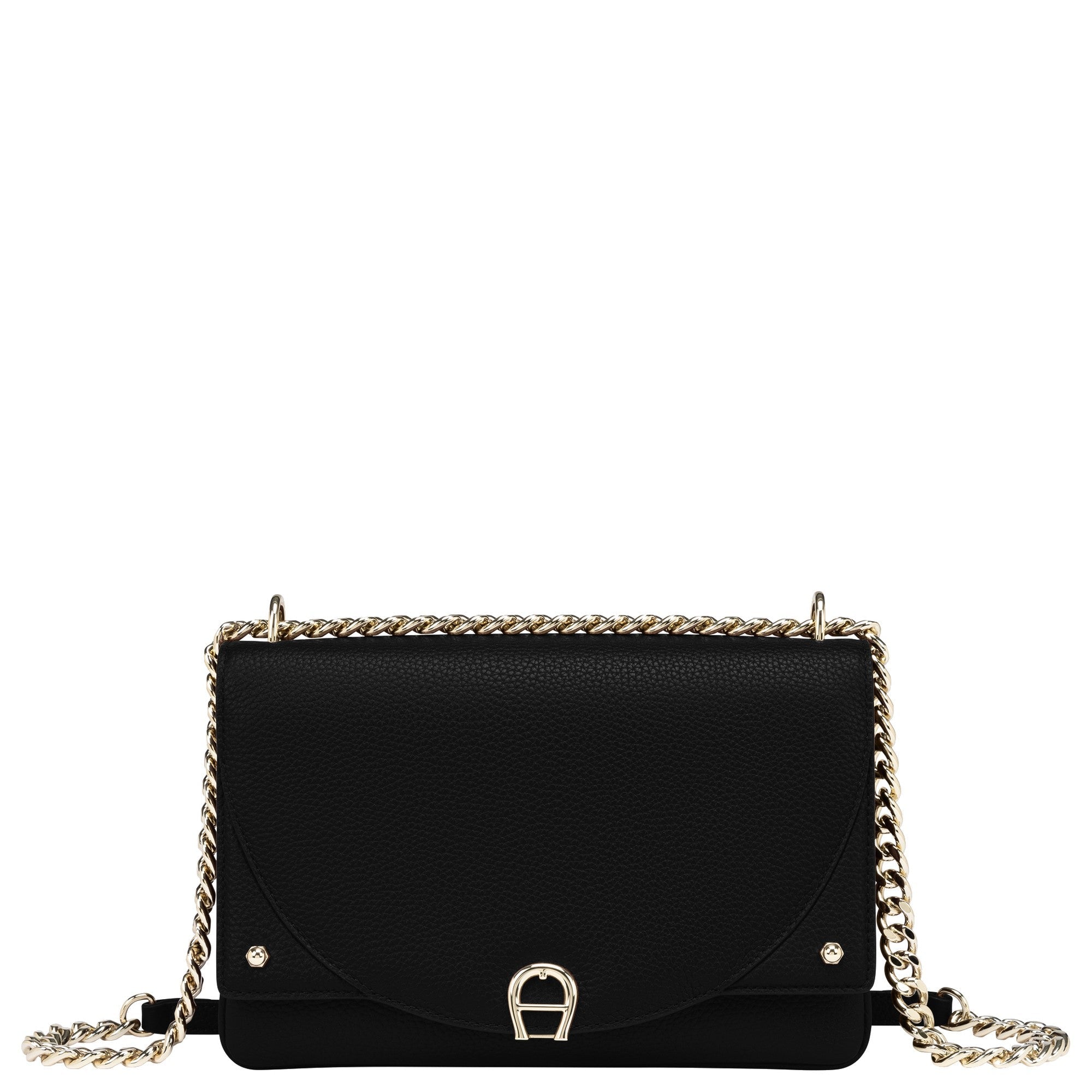 - Markantes Aigner-Logo – Das metallene Logo auf der Überschlagklappe unterstreicht die Exklusivität der Tasche.