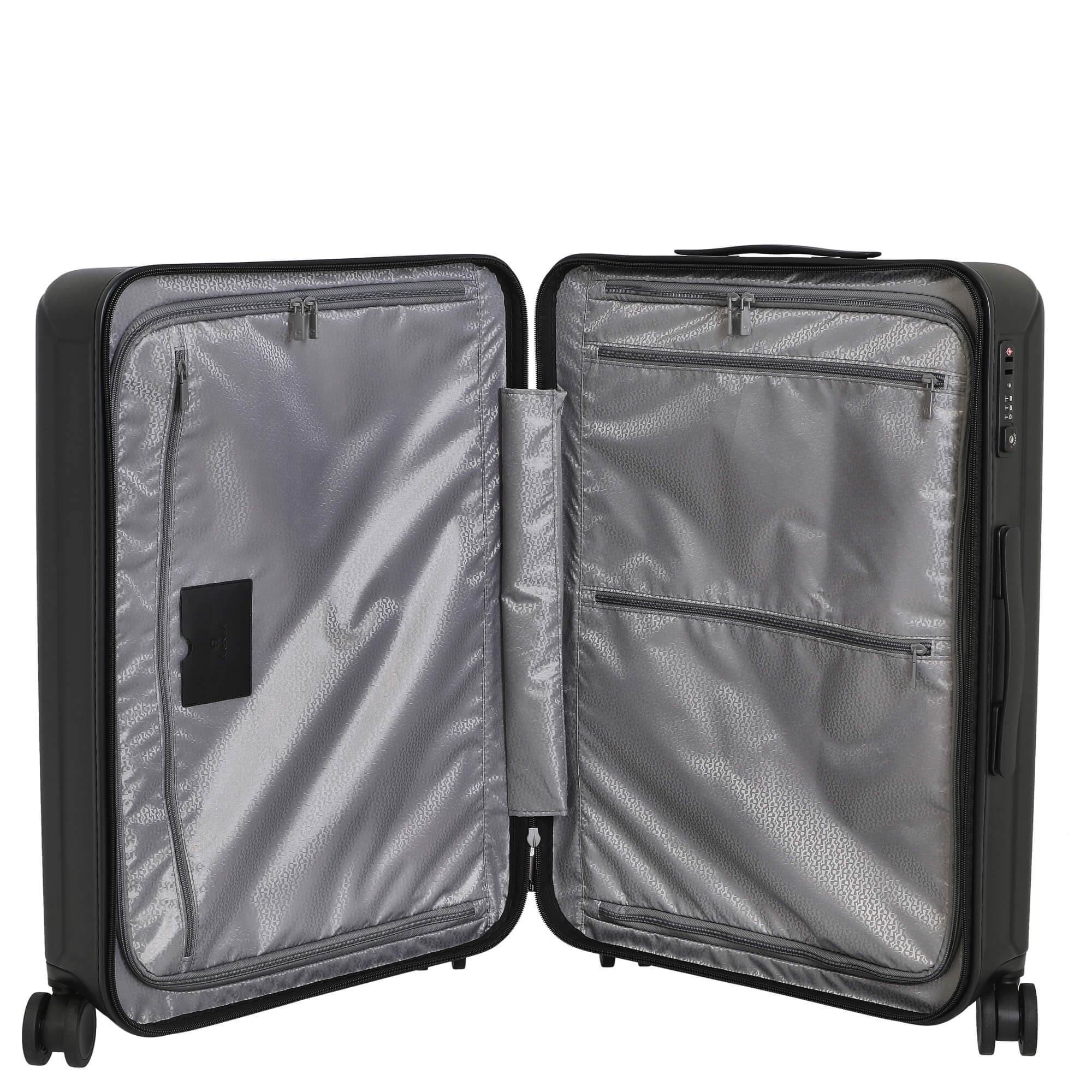 Dieser funktional gestaltete Trolley von Aigner verbindet technische Details mit zeitloser Eleganz und ist ein zuverlässiger Begleiter für Geschäfts- und Privatreisen.
