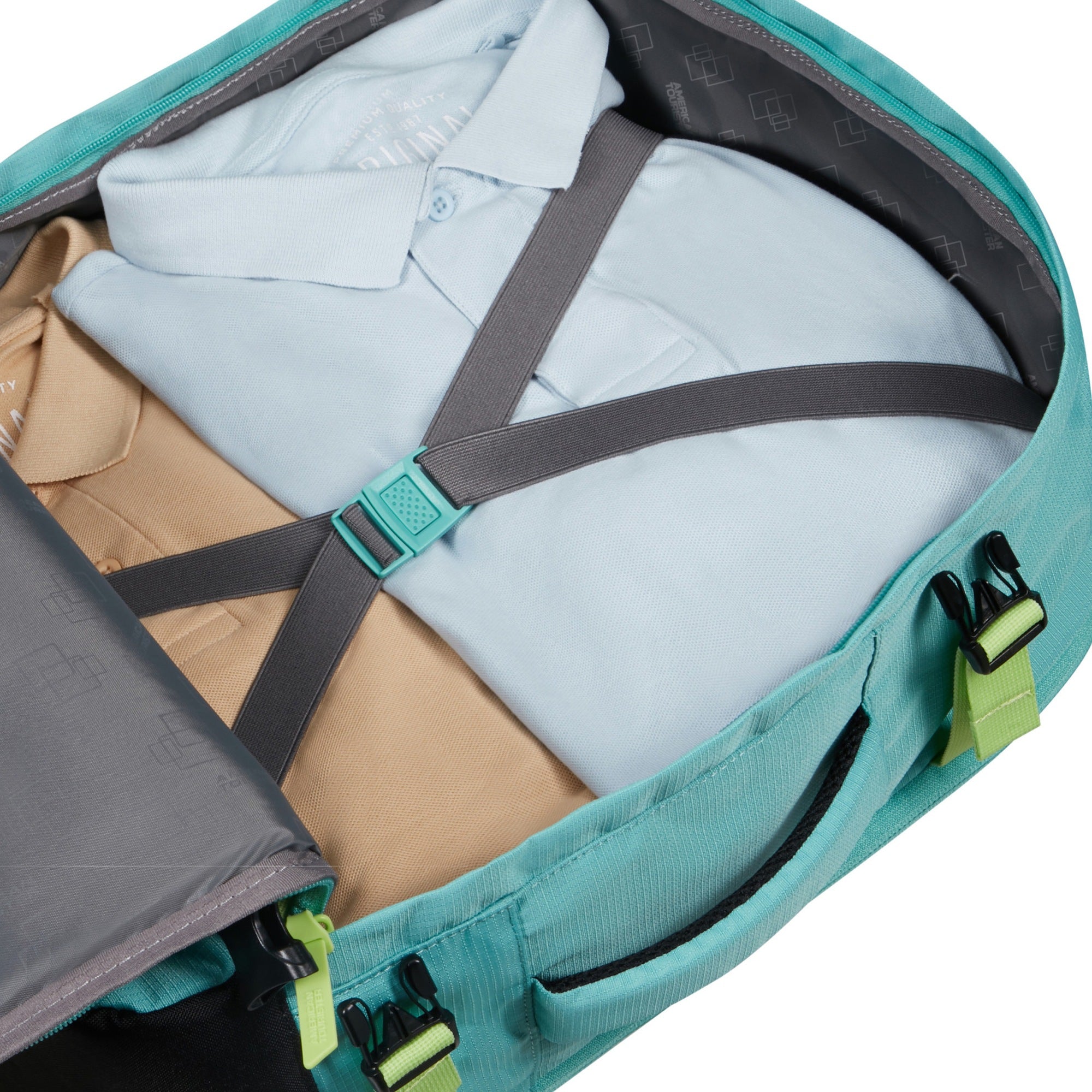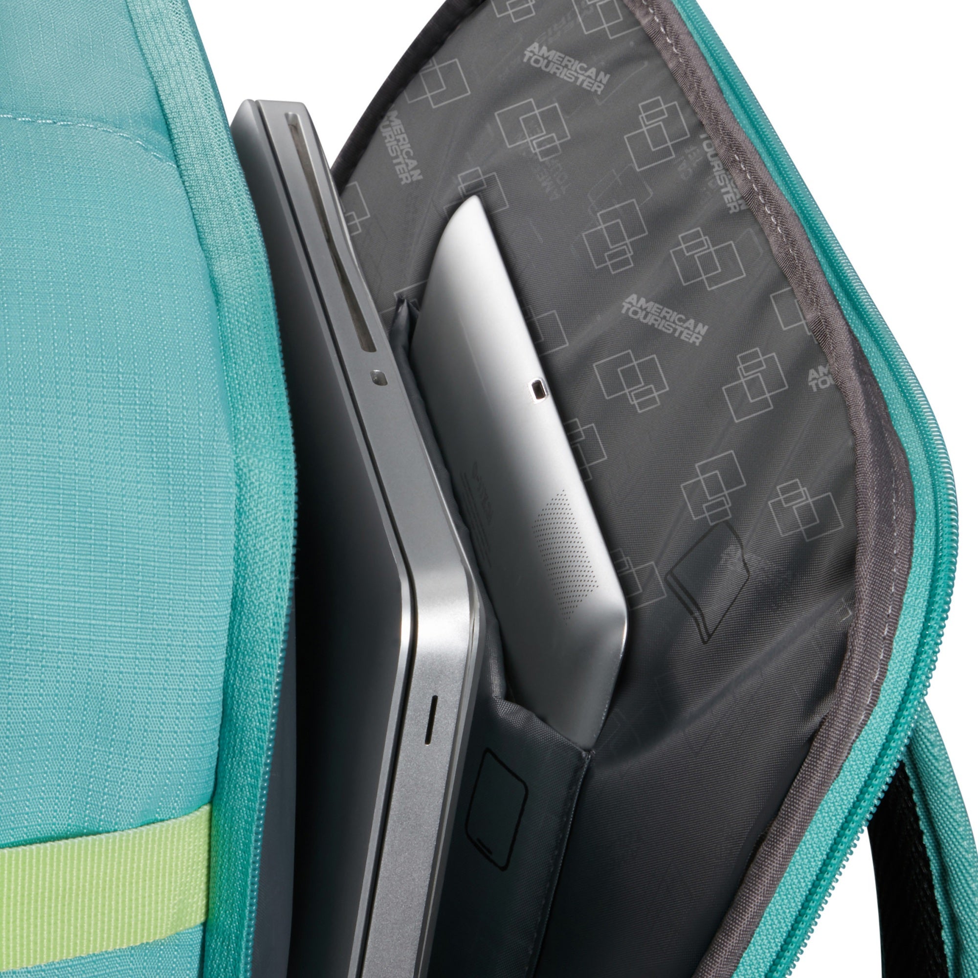 Der American Tourister Take2Cabin ist ein robuster Reiserucksack in frischem Türkis, der sich ideal für Flugreisen und den Alltag in der Stadt eignet.
