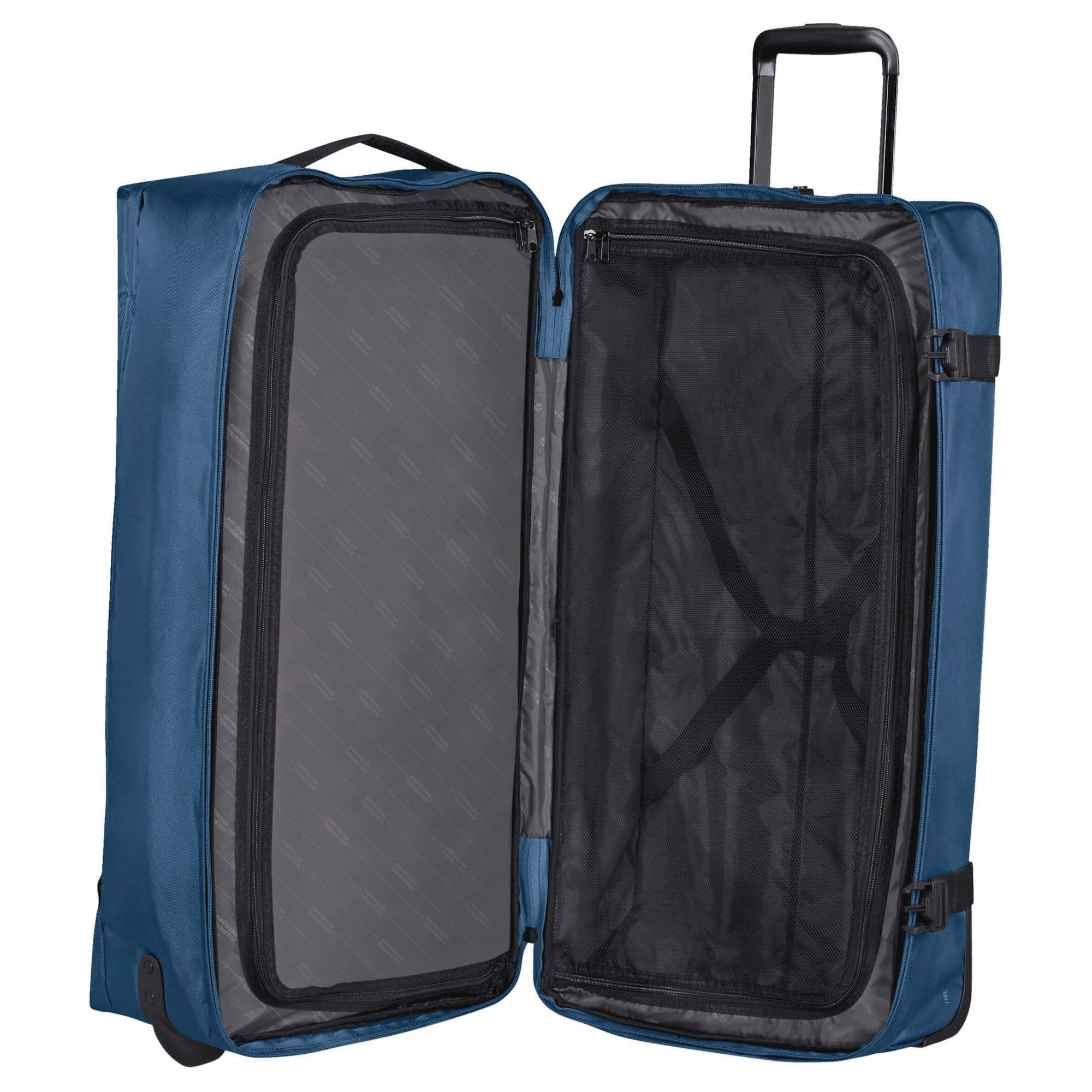Für zusätzlichen Komfort sind seitliche Kompressionsriemen integriert, die das Packen erleichtern und die Tasche kompakt halten. Mit den zwei leichtgängigen Rollen und dem Teleskopgestänge ist die Fortbewegung mühelos, egal ob am Flughafen oder auf der Straße. Zwei Tragegriffe ermöglichen zudem ein flexibles Tragen.