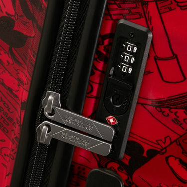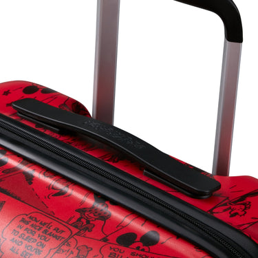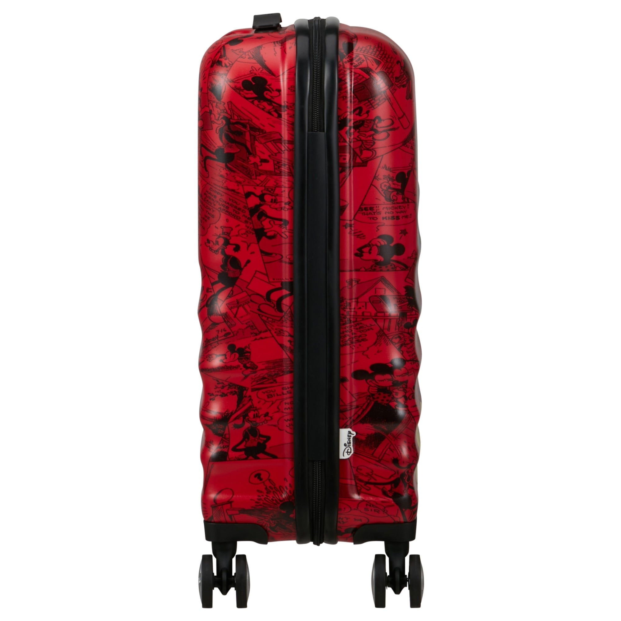 Der American Tourister Wavebreaker Disney Kabinentrolley verbindet robustes Design mit einem auffälligen Retro-Comic-Motiv von Mickey Mouse auf rotem Hintergrund. Mit seinen kompakten Maßen eignet sich der Trolley ideal als Handgepäck für Kurzreisen.