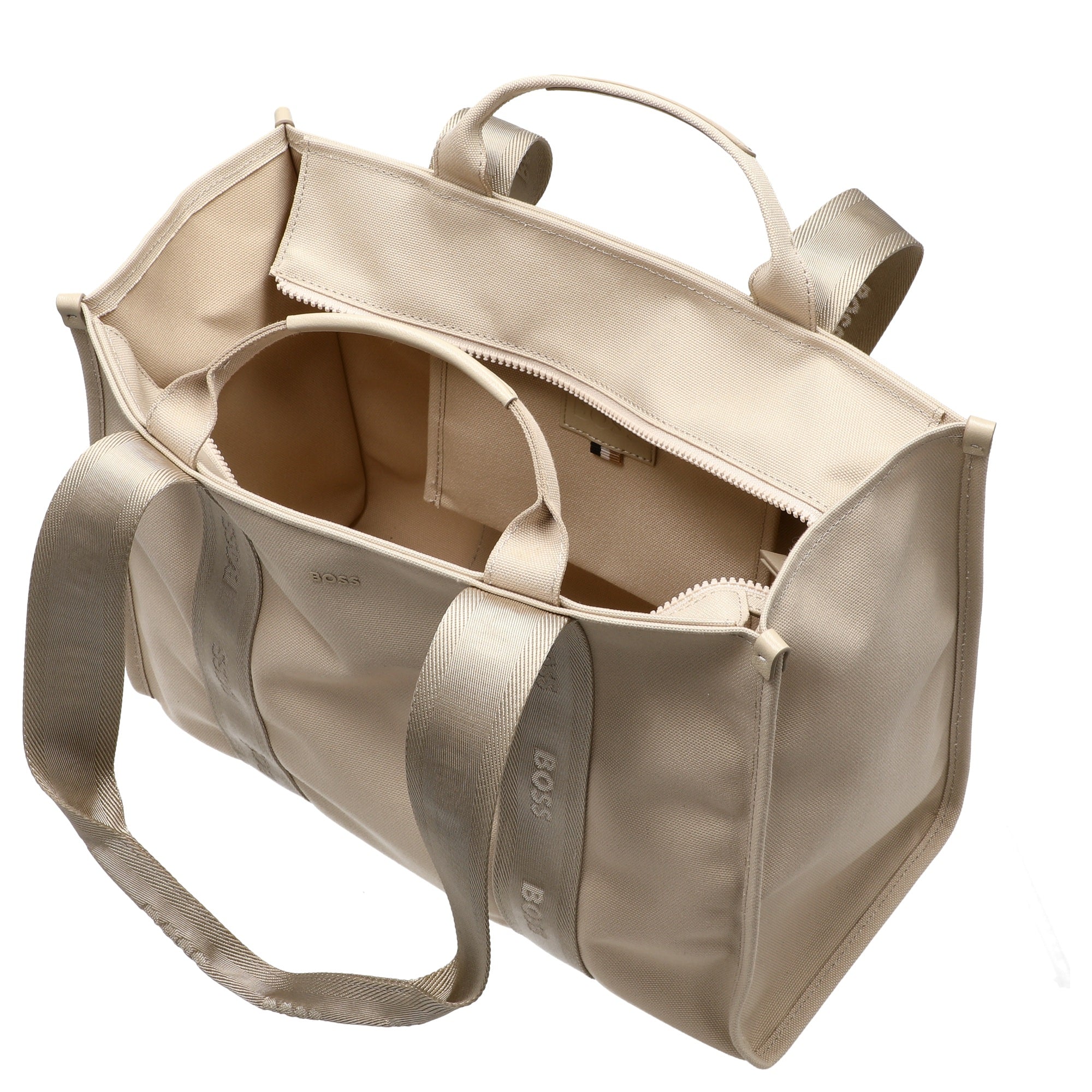 Der BOSS Women's Sandy Tote ist ein eleganter Shopper in zartem light beige, der modischen Stil und praktische Funktionalität harmonisch verbindet.