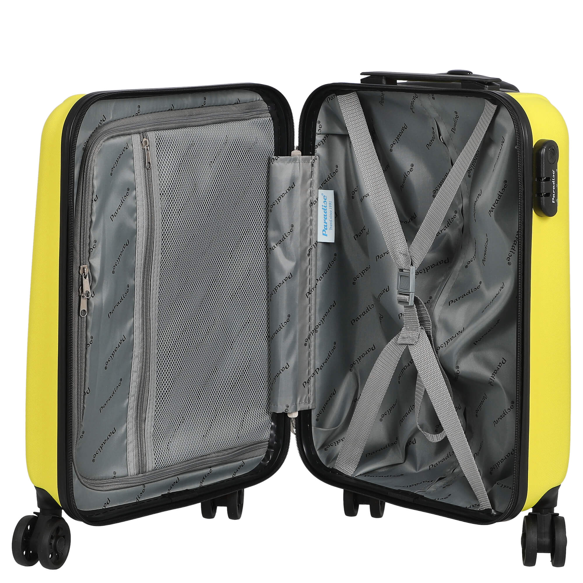 Entdecken Sie den CHECK.IN Aurora - 4-Rollen-Kabinentrolley in einem strahlenden zitronengelb, der nicht nur durch seine lebendige Farbe auffällt, sondern auch durch seine durchdachte Funktionalität. Ideal für Kurztrips oder als Handgepäck, bietet dieser Trolley alles, was Sie für Ihre Reisen benötigen.