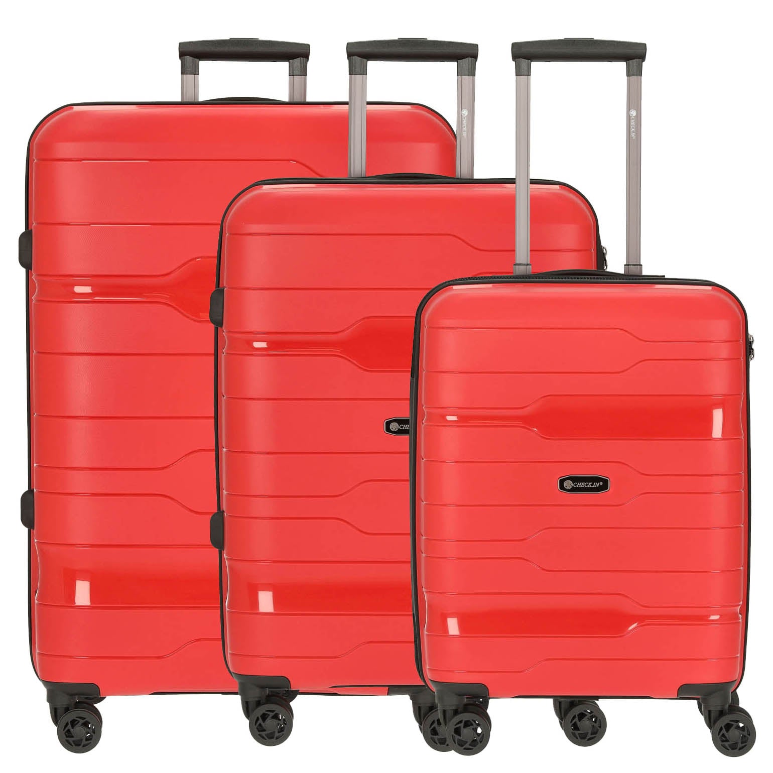 Entdecken Sie das CHECK.IN Memphis Trolley-Set in einem lebhaften Rot, das nicht nur durch sein exklusives Design, sondern auch durch seine Funktionalität besticht. Dieses 3-teilige Set ist der ideale Begleiter für jede Reise und überzeugt durch seine robuste Bauweise und durchdachte Ausstattung.