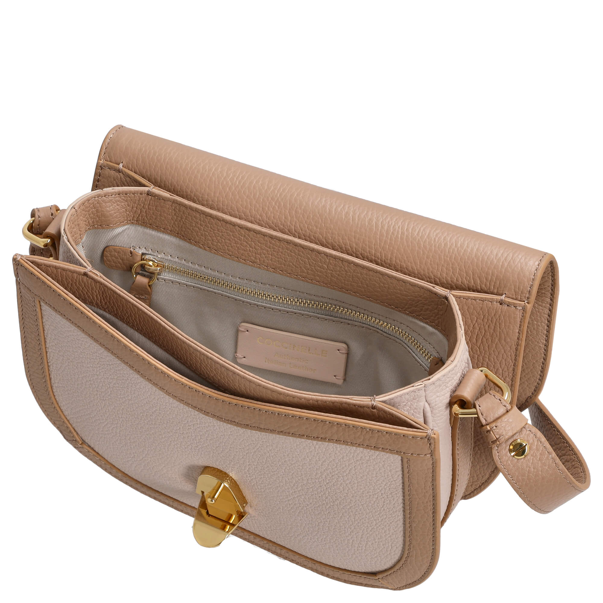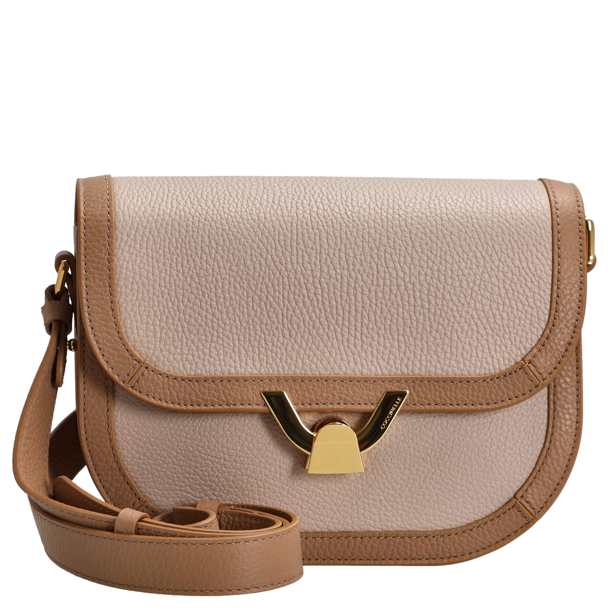 Die Coccinelle Dew Bicolor Umhängetasche in elegantem Rosé-Braun verbindet modisches Design mit durchdachter Funktionalität. Dieses stilvolle Accessoire aus hochwertigem, angenehm griffigem Material ist ideal für Frauen, die Wert auf Qualität und zeitlose Eleganz legen.