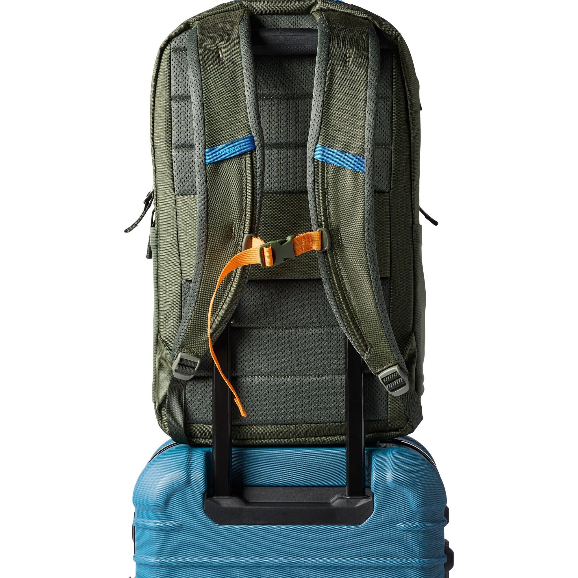 - Gepäckdurchführungsgurt – ermöglicht das sichere Aufsetzen auf Rollkoffer für komfortables Reisen
