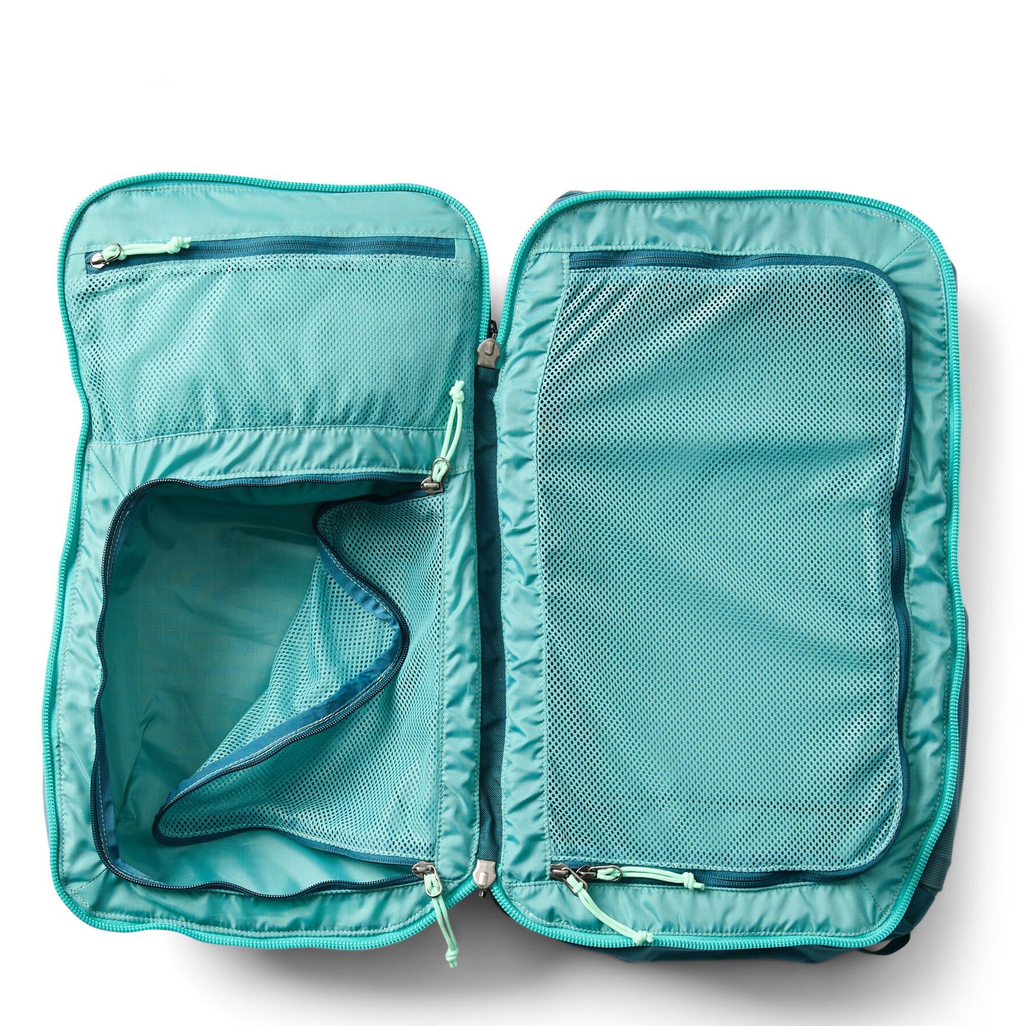 - Kofferähnliche Öffnung – das Hauptfach lässt sich über einen umlaufenden Reißverschluss komplett öffnen, was das Packen und Organisieren erleichtert